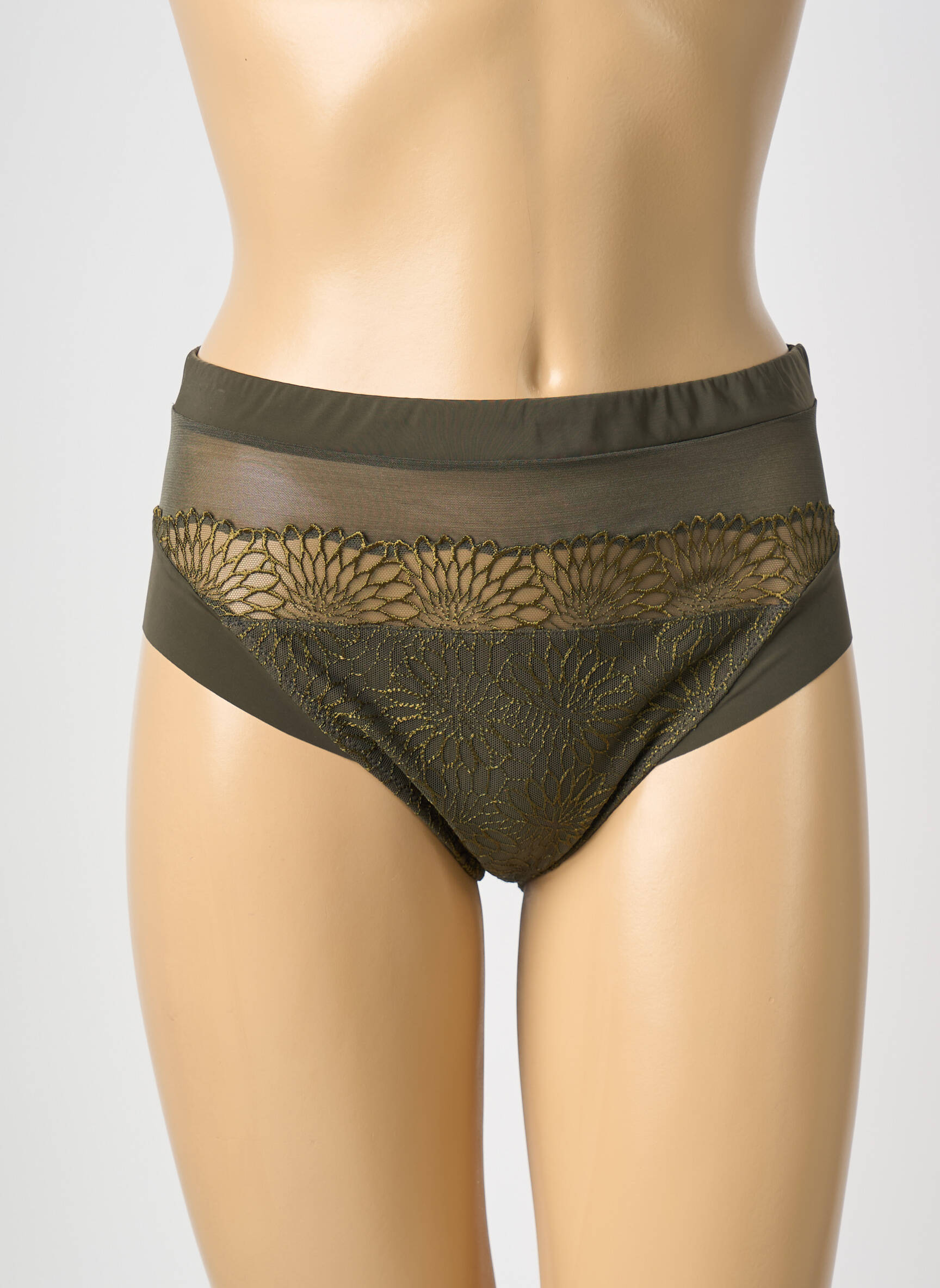 Offrez-vous une culotte élégante à prix mini avec ce modèle signé PRIMADONNA, qui séduit par son mélange raffiné de tulle transparent et de délicates broderies florales dans un coloris kaki tendance. Profitez d’un bon plan irrésistible pour ajouter à votre tiroir lingerie une touche de féminité sophistiquée sans vous ruiner.