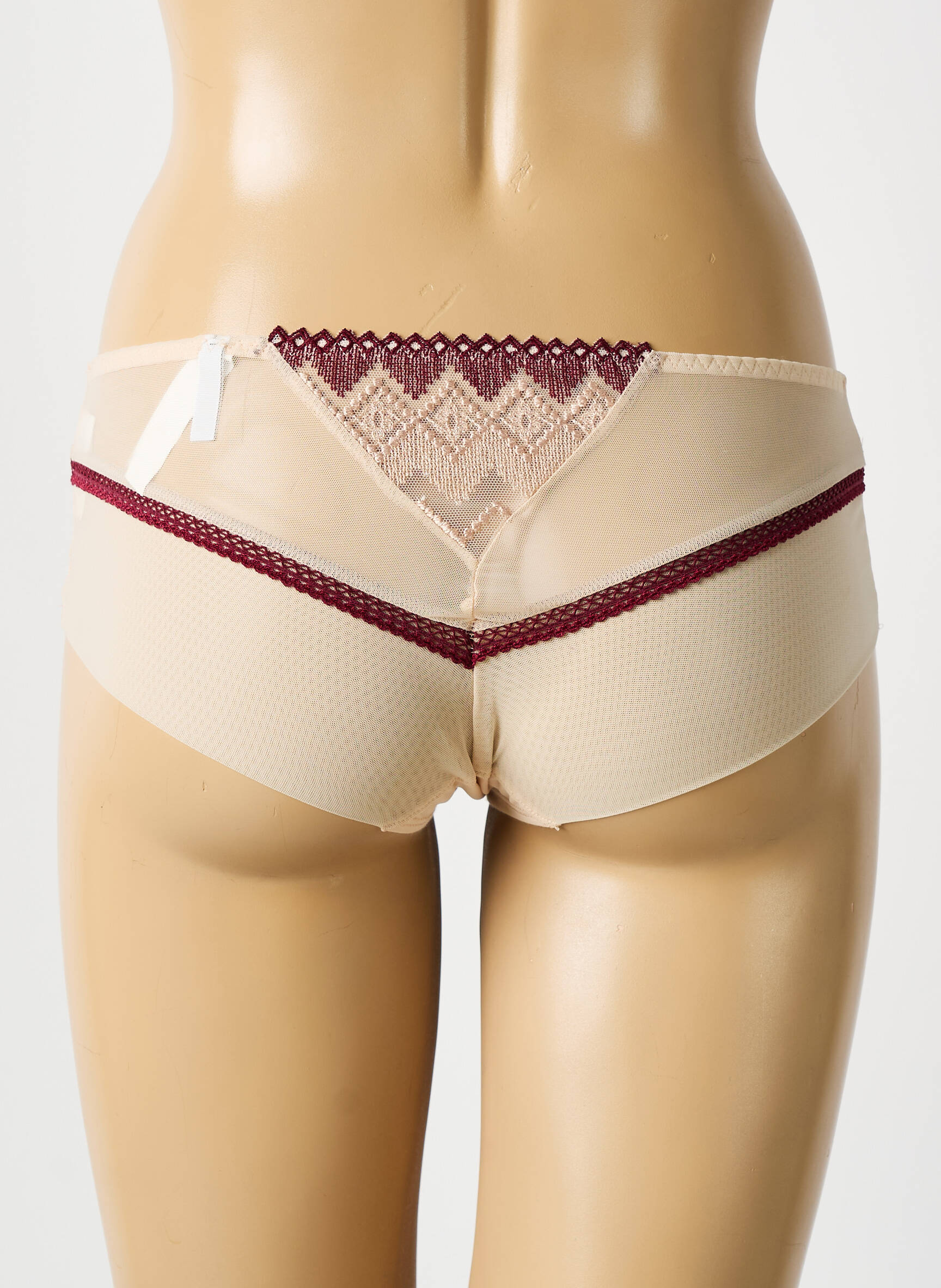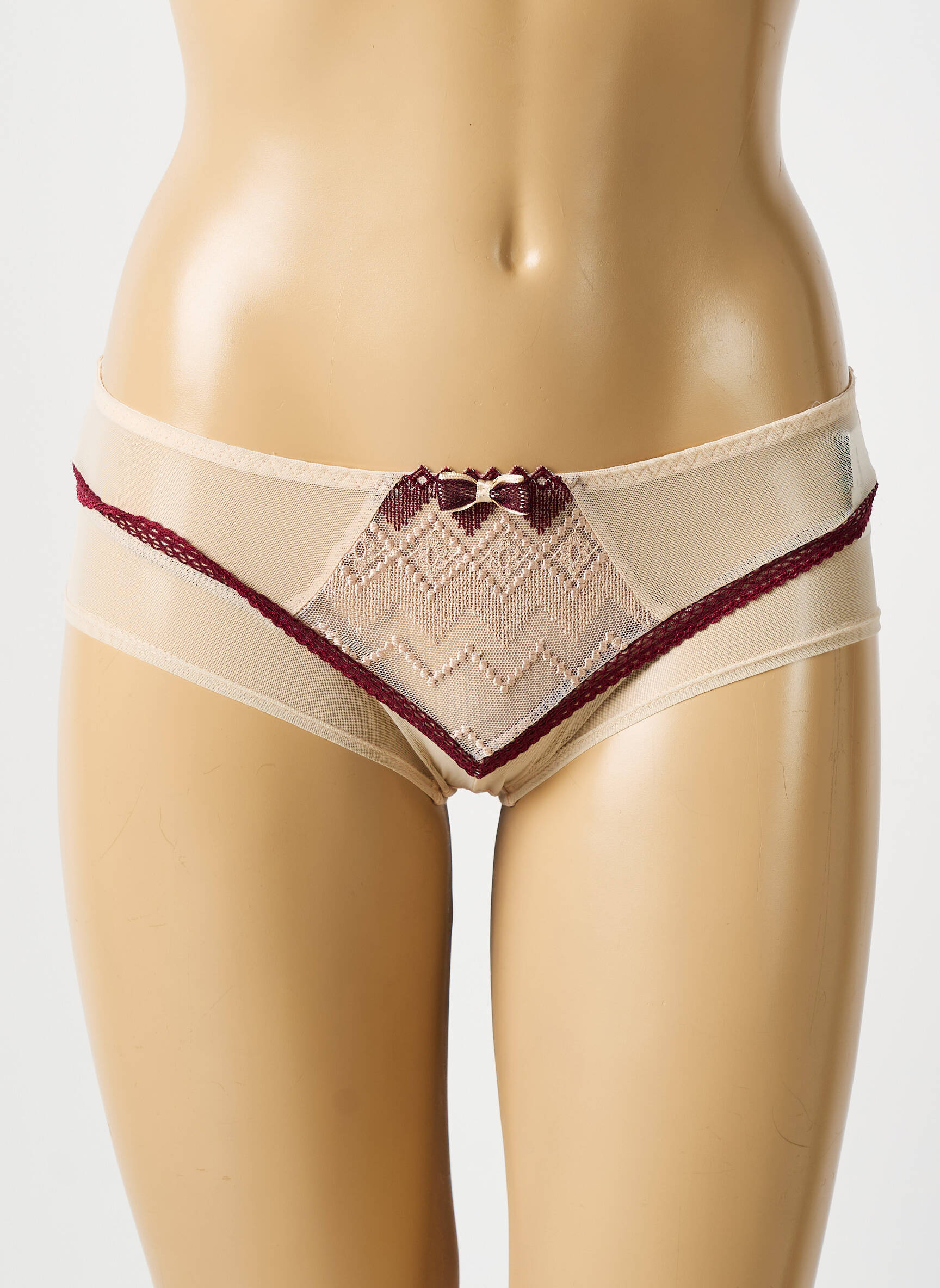 Craquez pour ce shorty BARBARA pour femme, un véritable bon plan pour celles qui recherchent l'élégance sans se ruiner. Avec sa base nude délicatement rehaussée d’un empiècement de tulle transparent, animé par une dentelle graphique bordeaux et un petit nœud raffiné à la taille, ce modèle promet confort et sophistication à petit prix, parfait pour se faire plaisir tout en maîtrisant son budget.