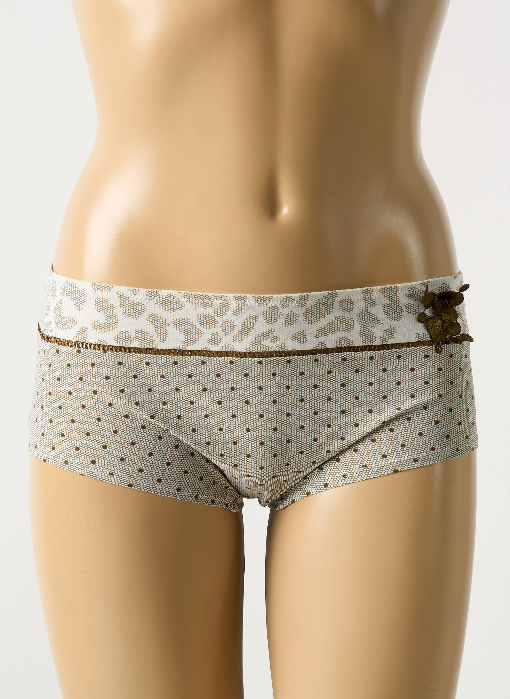 Craquez pour ce shorties BARBARA pour femme, un véritable bon plan pour profiter du style et du confort à petit prix. Avec son imprimé pois délicat associé à une ceinture contrastée effet léopard et ses petits nœuds raffinés sur le côté, il apporte une touche de fantaisie et d'élégance à votre lingerie quotidienne tout en vous assurant une excellente affaire.