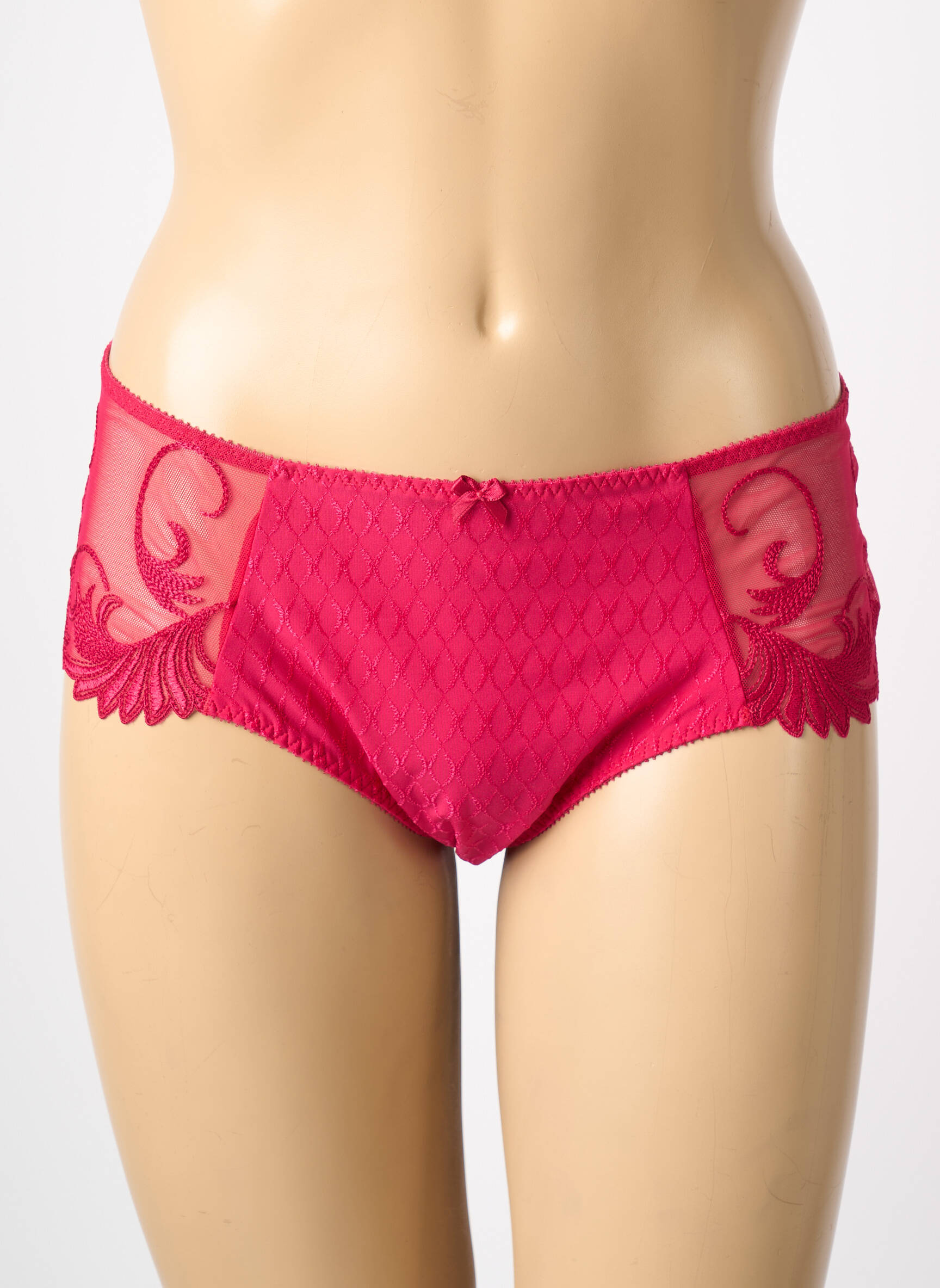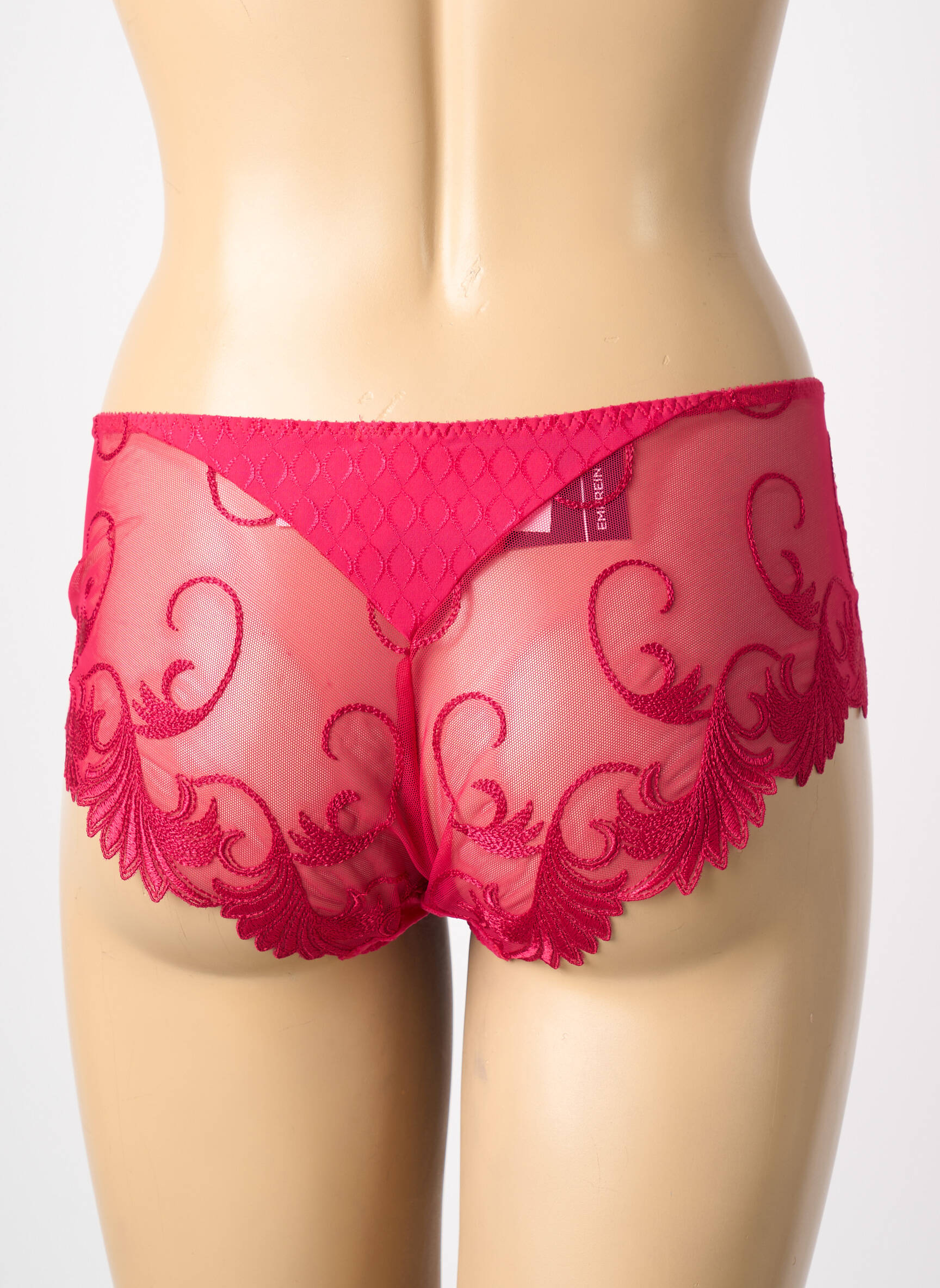Profitez d’un bon plan incontournable avec ce shorty pour femme signé Empreinte, affichant une teinte framboise éclatante et un subtil jeu de transparence grâce à ses empiècements brodés sur les hanches. Offrant une coupe couvrante et élégante, ce modèle mise sur le raffinement avec son motif discret à l’avant et son petit nœud délicat à la taille. Idéal pour se faire plaisir sans se ruiner, ce shorty allie séduction, confort et un prix mini pour se sentir belle au quotidien.