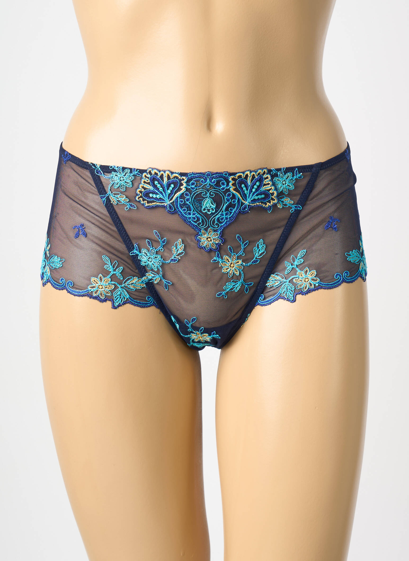 Profitez d’un bon plan à ne pas manquer avec ce shorty de la marque LISE CHARMEL, une occasion rare de s’offrir une pièce de lingerie haut de gamme à prix doux. Ce modèle séduit par sa finesse et son jeu de transparence, sublimé par une délicate broderie florale aux nuances de bleu et de turquoise sur un fond marine élégant, pour un effet raffiné et féminin. La coupe enveloppante assure un maintien confortable tout en mettant en valeur la silhouette, pour un look glamour accessible à petit prix.