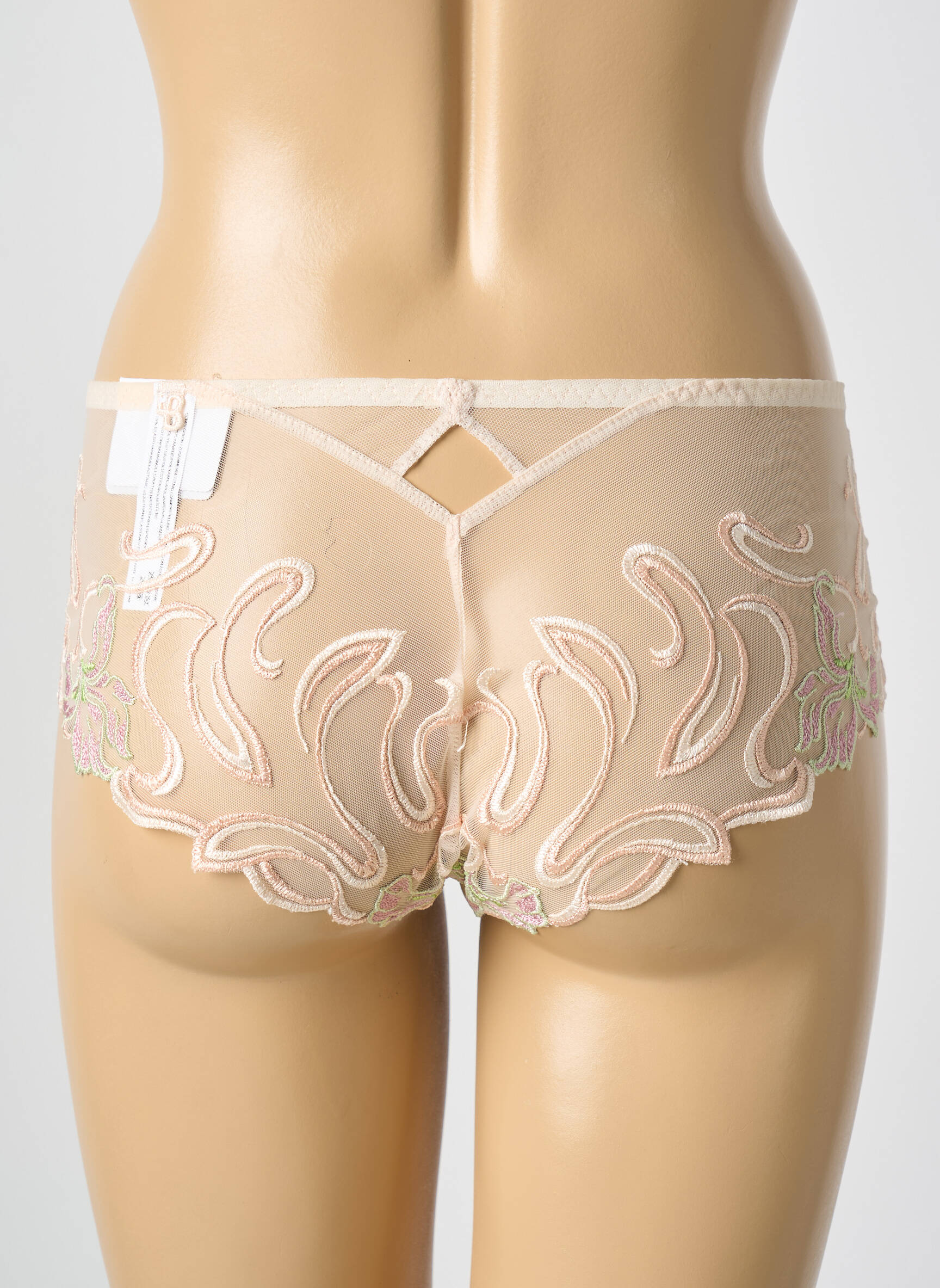 Oser porter la délicatesse au creux de la peau, c’est ce que propose ce shorty signé LOUISA BRACQ, où la douceur d’un tissu beige satiné s’allie à la finesse de la dentelle brodée dans des teintes pâles et subtilement iridescentes, offrant une silhouette à la fois élégante et séduisante.