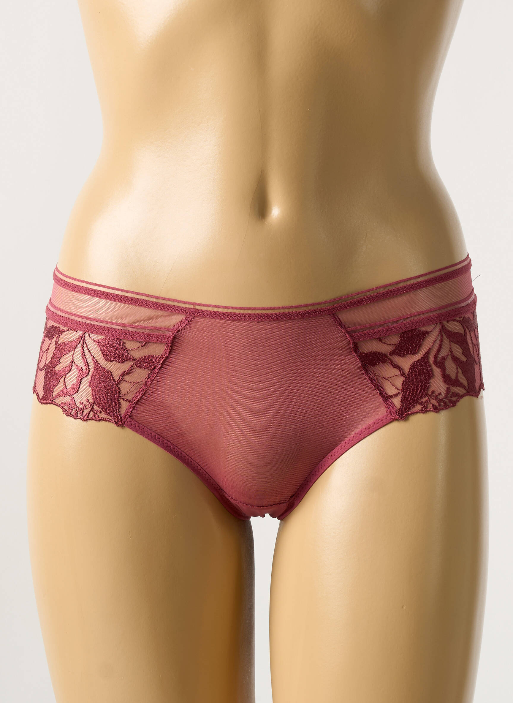 Offrez-vous le luxe de la maison Lejaby à prix mini avec ce shorty raffiné au coloris bordeaux profond, sublimé par ses empiècements délicats en tulle brodé sur les côtés qui apportent une note de féminité et de transparence subtile, le tout à prix tout doux pour un bon plan lingerie alliant élégance et petit budget.