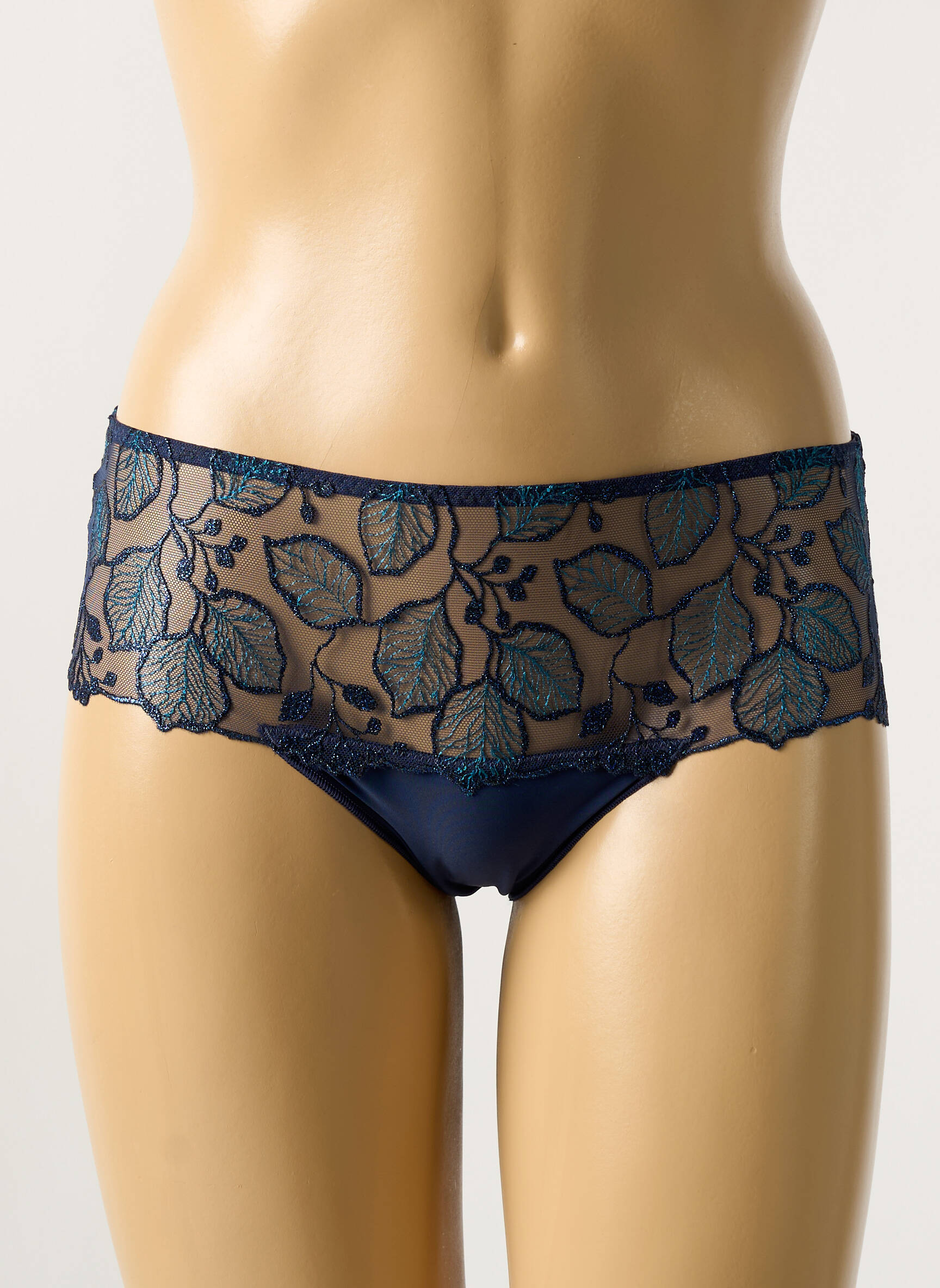 Craquez pour ce shorty SIMONE PERELE pour femme, une pièce raffinée à prix tout doux qui allie élégance et confort avec sa délicate dentelle bleu nuit brodée de motifs feuillages, idéale pour se faire plaisir sans se ruiner. Profitez de la finition soignée et du style sophistiqué signé d'une grande marque à petit prix grâce à notre sélection de déstockage multi-marques.