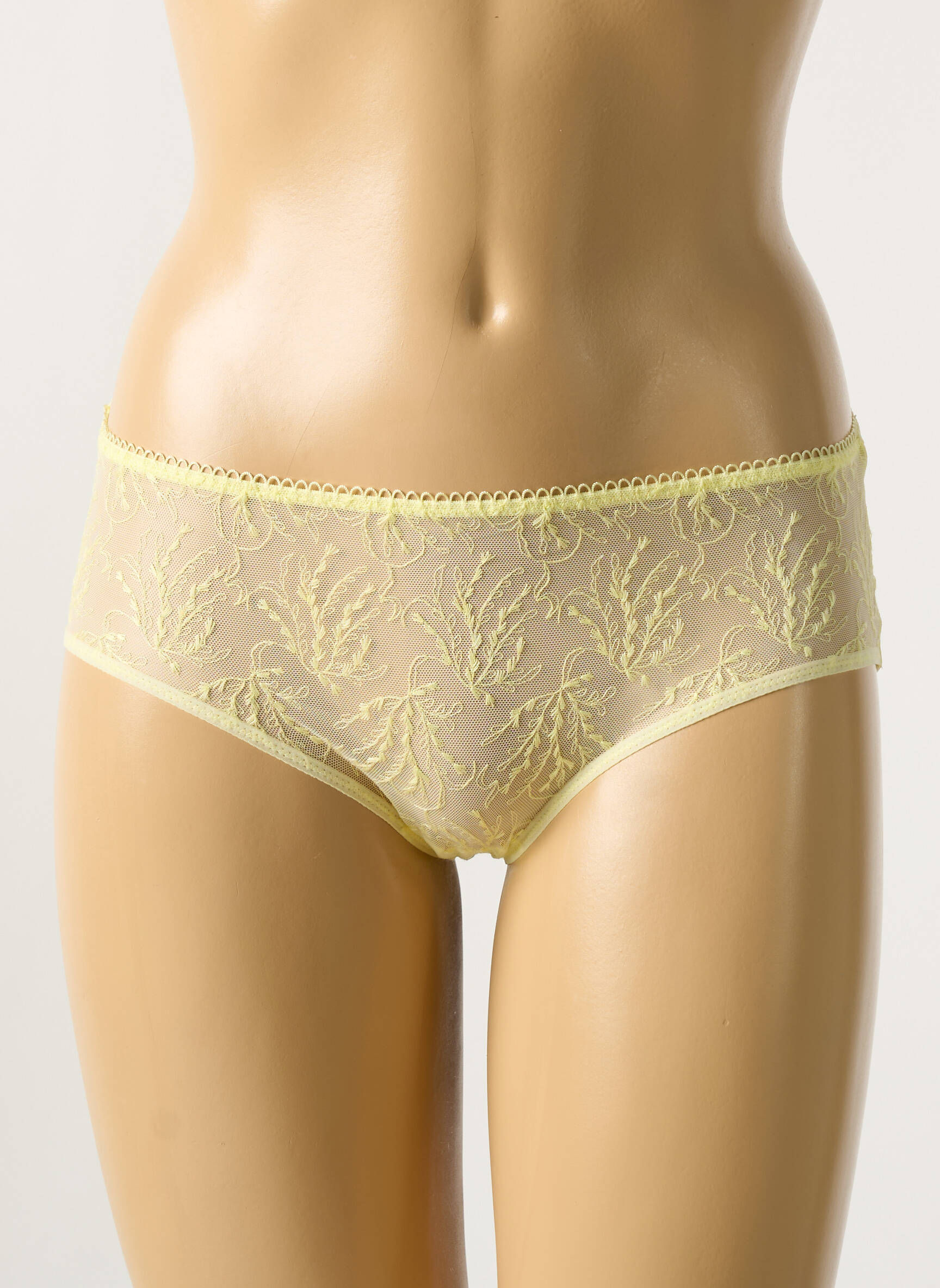 Profitez d’un bon plan lingerie avec ce shorty Simone Pérèle pour femme qui allie élégance et transparence à petit prix, avec sa délicate dentelle jaune pastel et ses finitions raffinées pour une touche féminine irrésistible, parfait pour se faire plaisir sans se ruiner.