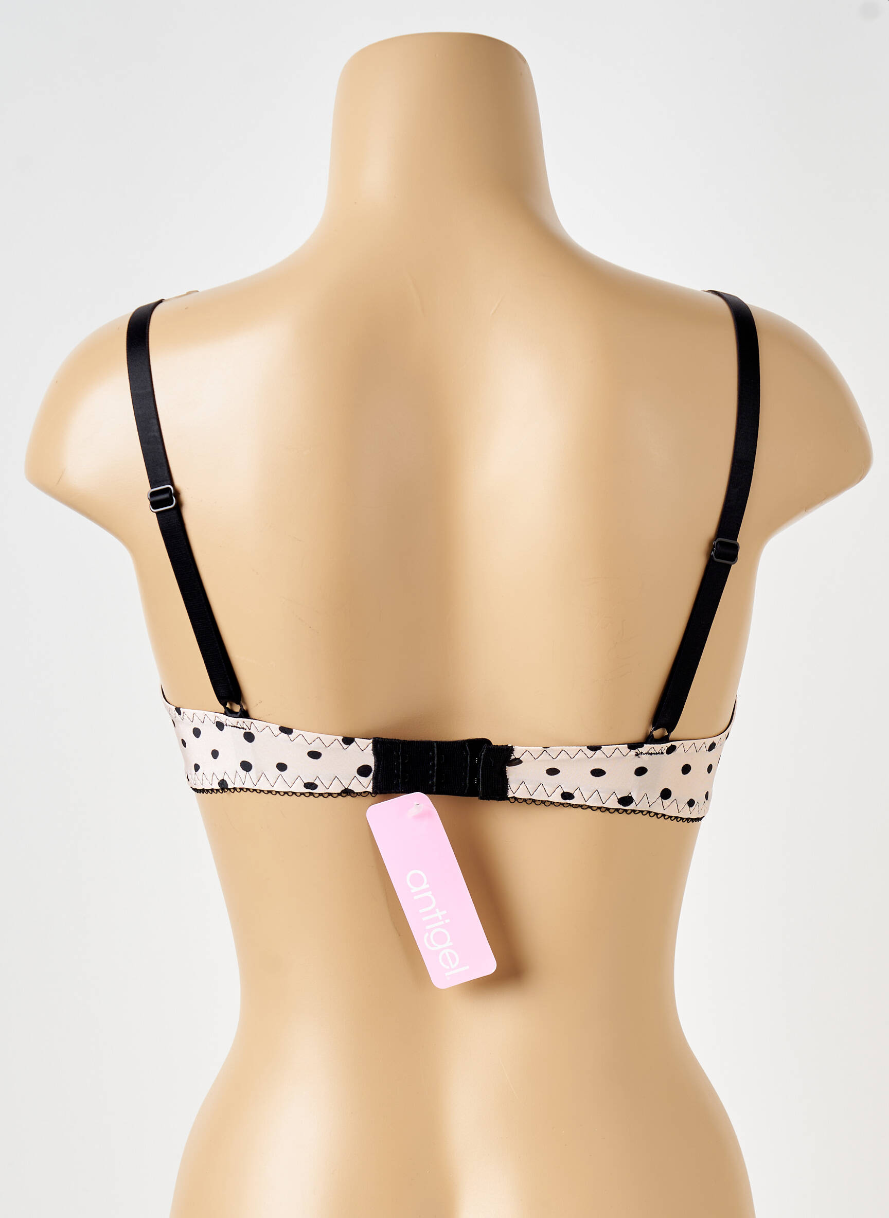 Profitez d’un vrai bon plan avec ce soutien-gorge ANTIGEL pour femme, proposé à prix mini sans compromis sur le style. Son tissu délicat rose pâle à pois noirs apporte une touche rétro-chic tandis que la dentelle noire souligne le décolleté avec élégance. Les bonnets joliment dessinés s’accompagnent d’un petit nœud raffiné au centre, pour une allure féminine et moderne. C’est l’occasion idéale de vous offrir une pièce de marque tendance tout en réalisant de réelles économies.