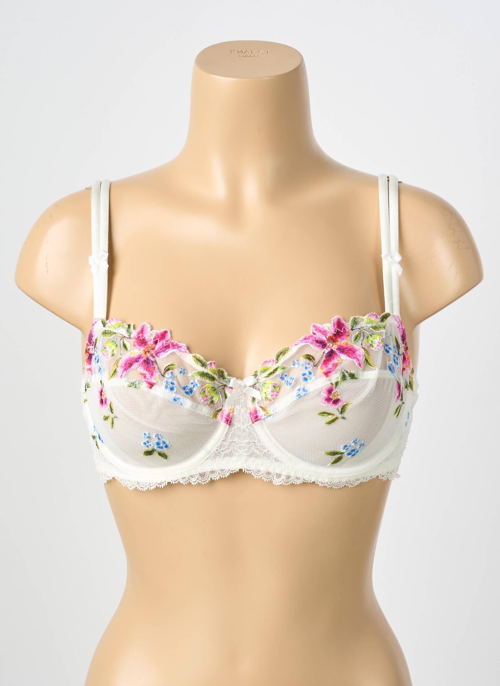 Profitez d’un superbe bon plan en optant pour ce soutien-gorge Lise Charmel pour femme, une pièce raffinée qui allie élégance et douceur à prix mini. Son délicat fond écru met en valeur une somptueuse broderie florale multicolore, rehaussée de détails fins et féminins, idéale pour apporter une touche de luxe à votre quotidien sans vous ruiner. Saisissez cette occasion unique de vous offrir une lingerie haut de gamme à prix cassé.