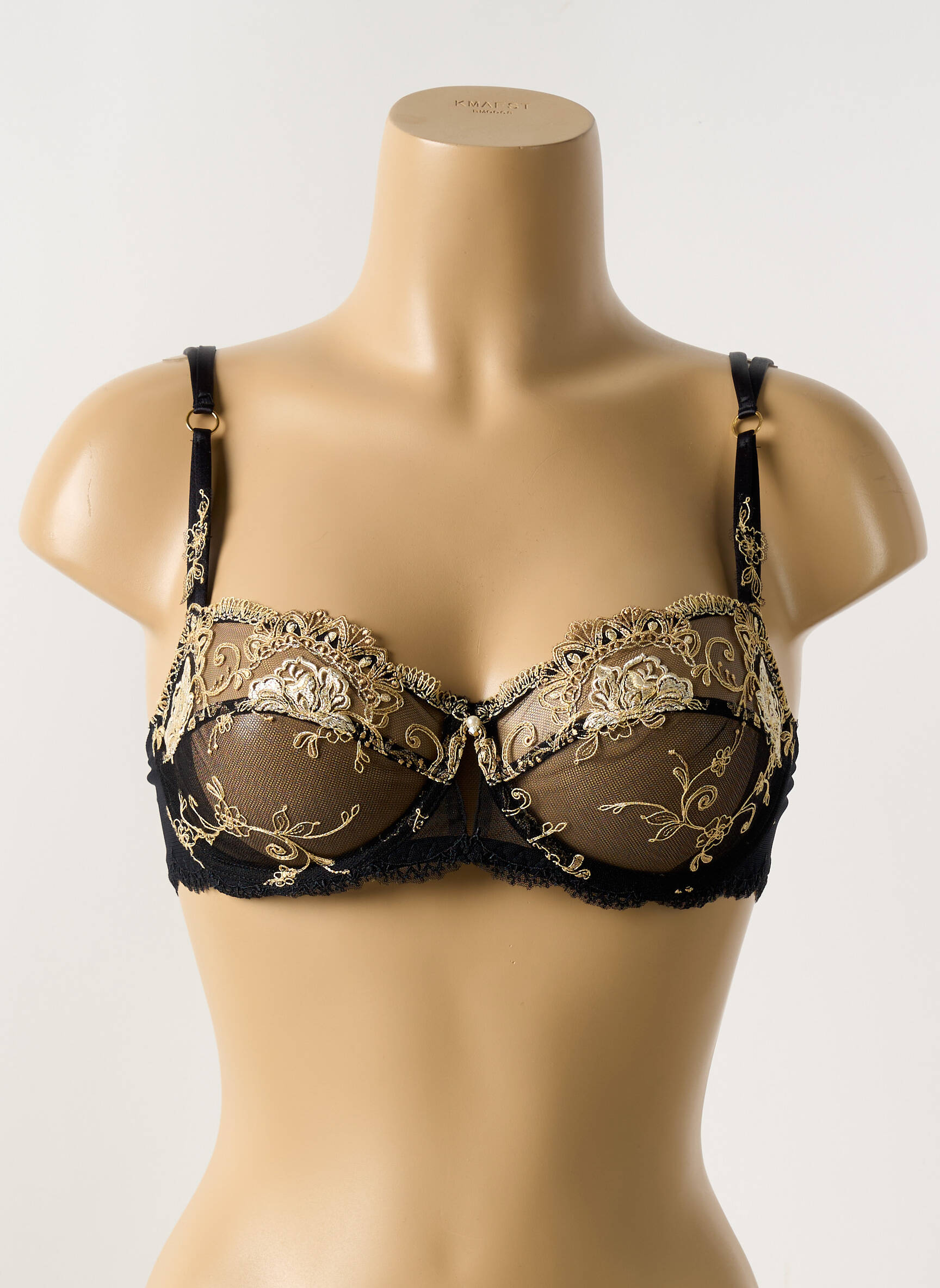 Profitez d’un excellent rapport qualité-prix avec ce somptueux soutien-gorge LISE CHARMEL, qui marie élégance et raffinement grâce à sa délicate broderie florale dorée sur tulle noir, offrant un maintien tout en féminité à prix réduit pour s’offrir le luxe sans compromis.