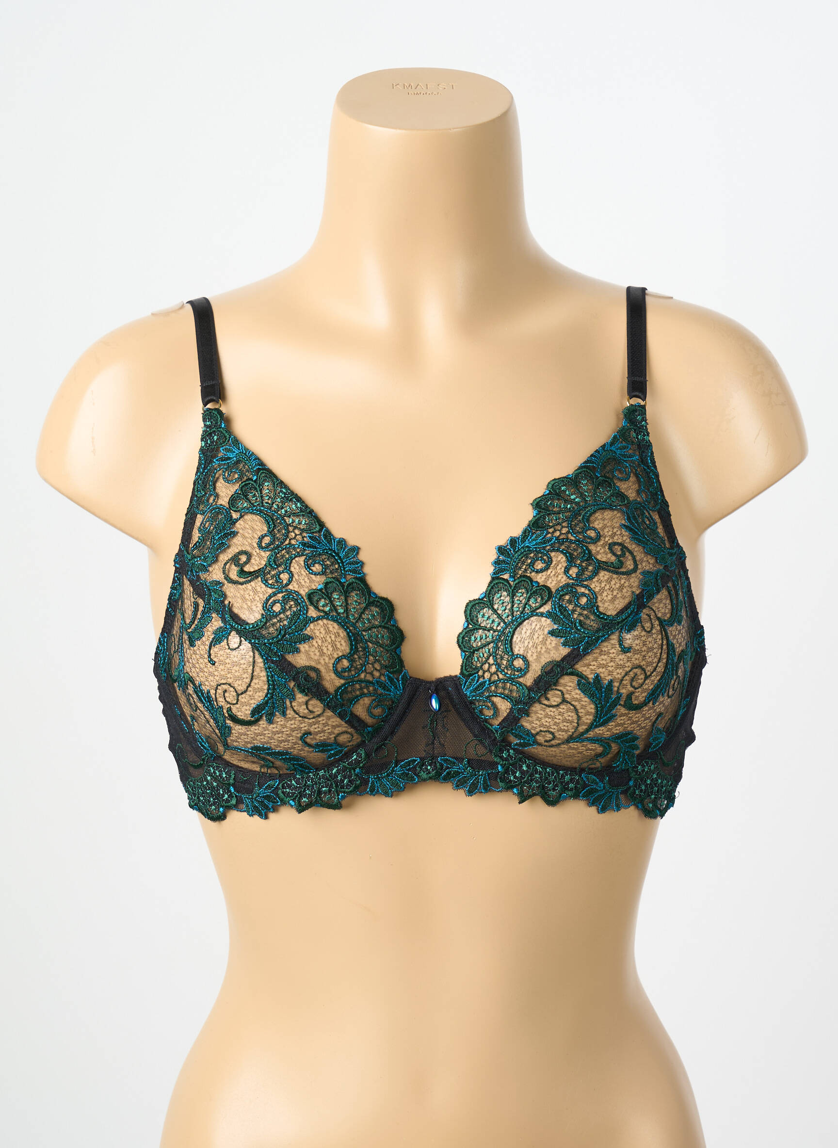 Craquez pour ce superbe soutien-gorge Lise Charmel à prix mini, qui marie raffinement et élégance avec sa dentelle délicatement brodée aux motifs feuillus vert émeraude sur fond nude. Sa forme délicate et son jeu de transparence offrent une allure séduisante tout en assurant un maintien confortable, idéal pour se faire plaisir sans se ruiner et profiter du luxe à prix outlet.