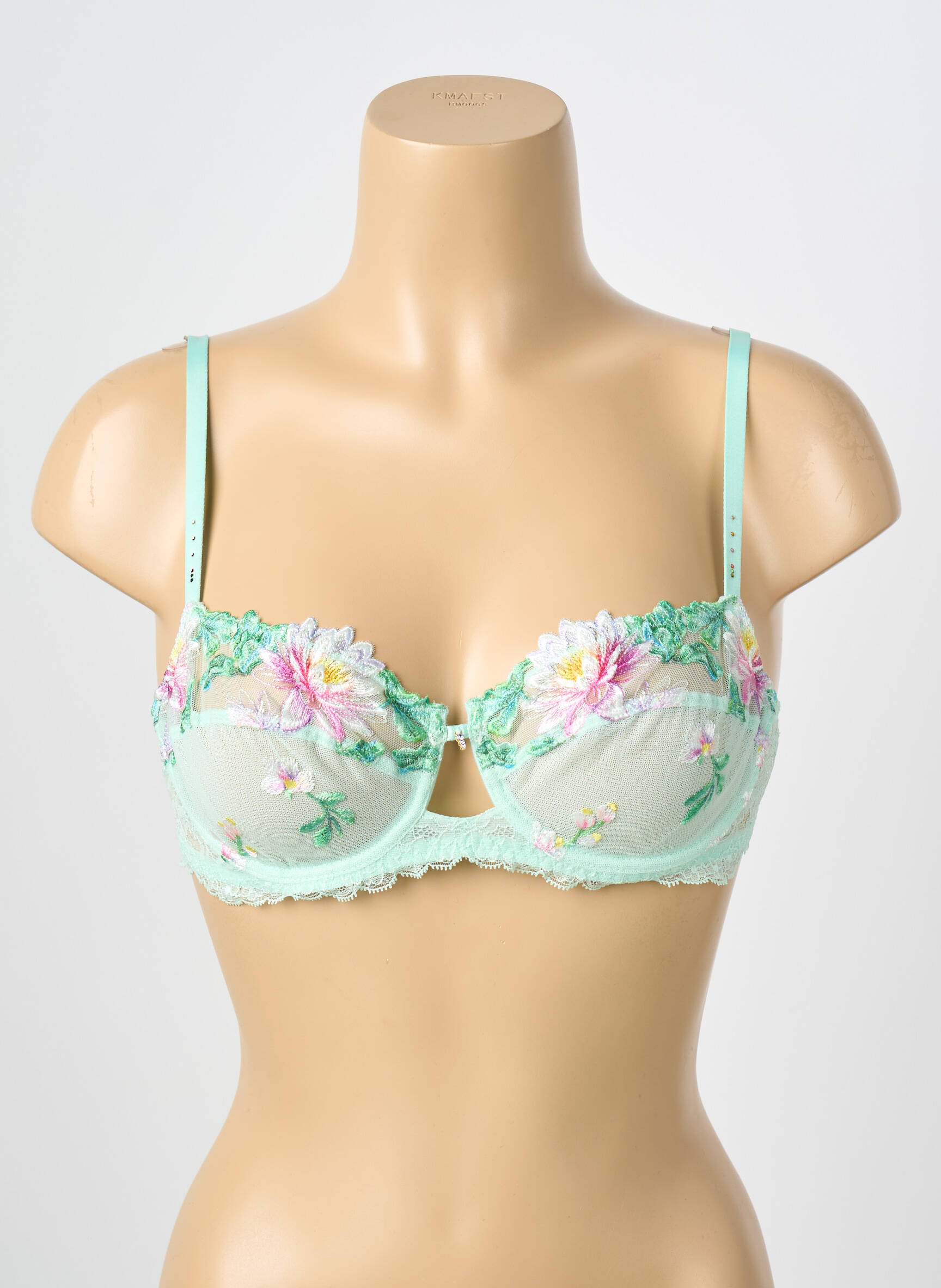 Craquez pour ce superbe soutien-gorge Lise Charmel à prix mini, une belle occasion de se faire plaisir sans se ruiner avec un modèle raffiné. Ce modèle séduit par son délicat coloris vert d’eau rehaussé d’une broderie florale aux teintes tendres, qui apporte une touche de fraîcheur et de féminité. Les bonnets subtilement transparents et le petit détail ajouré à l’entre-seins soulignent l’élégance de cette pièce qui allie confort, maintien et style à petit prix. Profitez d’une lingerie de grande marque à prix déstocké pour sublimer votre quotidien en toute légèreté.
