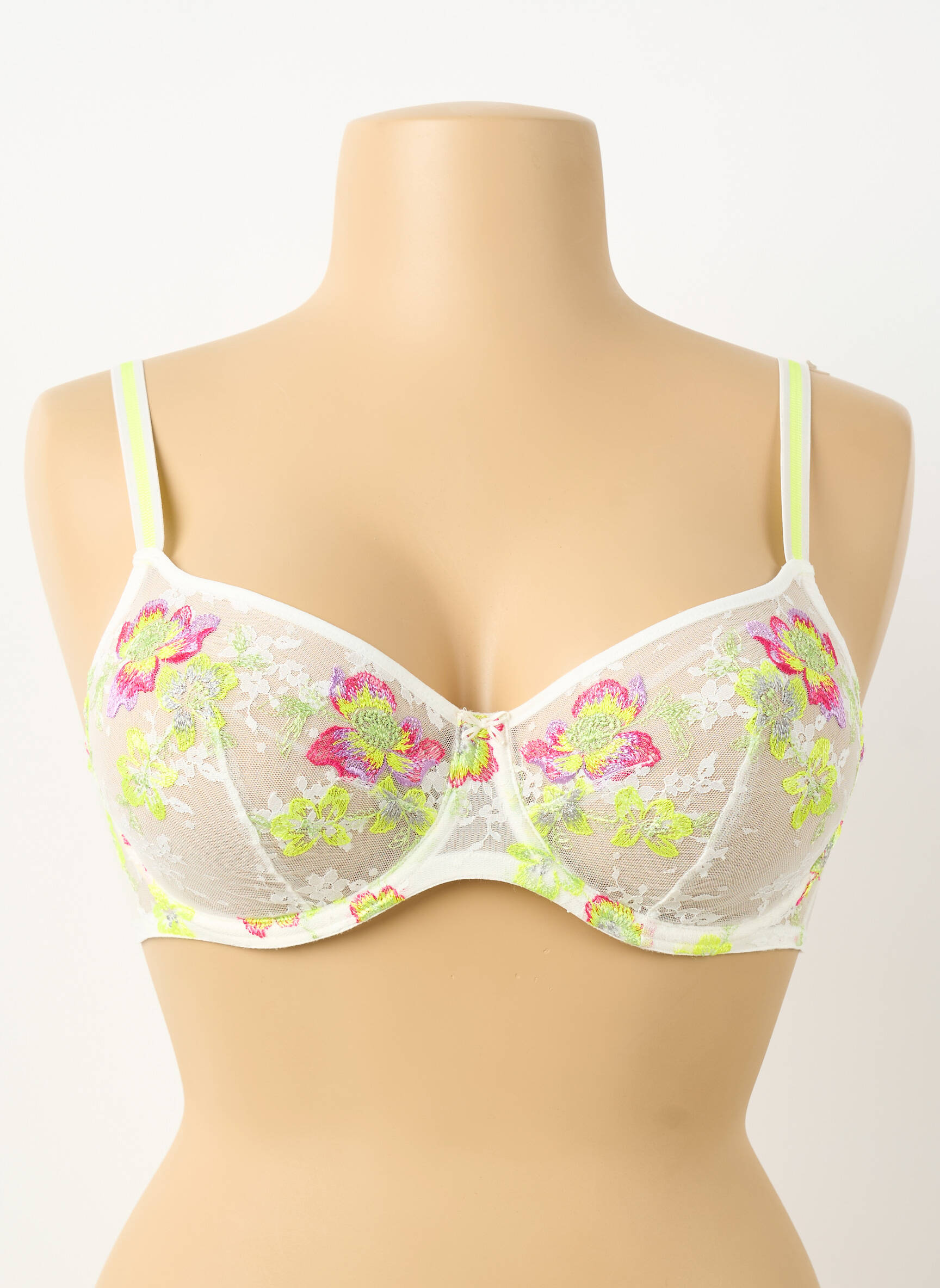 Offrez-vous le raffinement de la marque MARIE JO à prix doux avec ce soutien-gorge pour femme qui allie élégance et féminité grâce à sa délicate broderie florale aux couleurs fraîches et printanières sur une base transparente, idéal pour celles qui souhaitent se faire plaisir tout en maîtrisant leur budget.