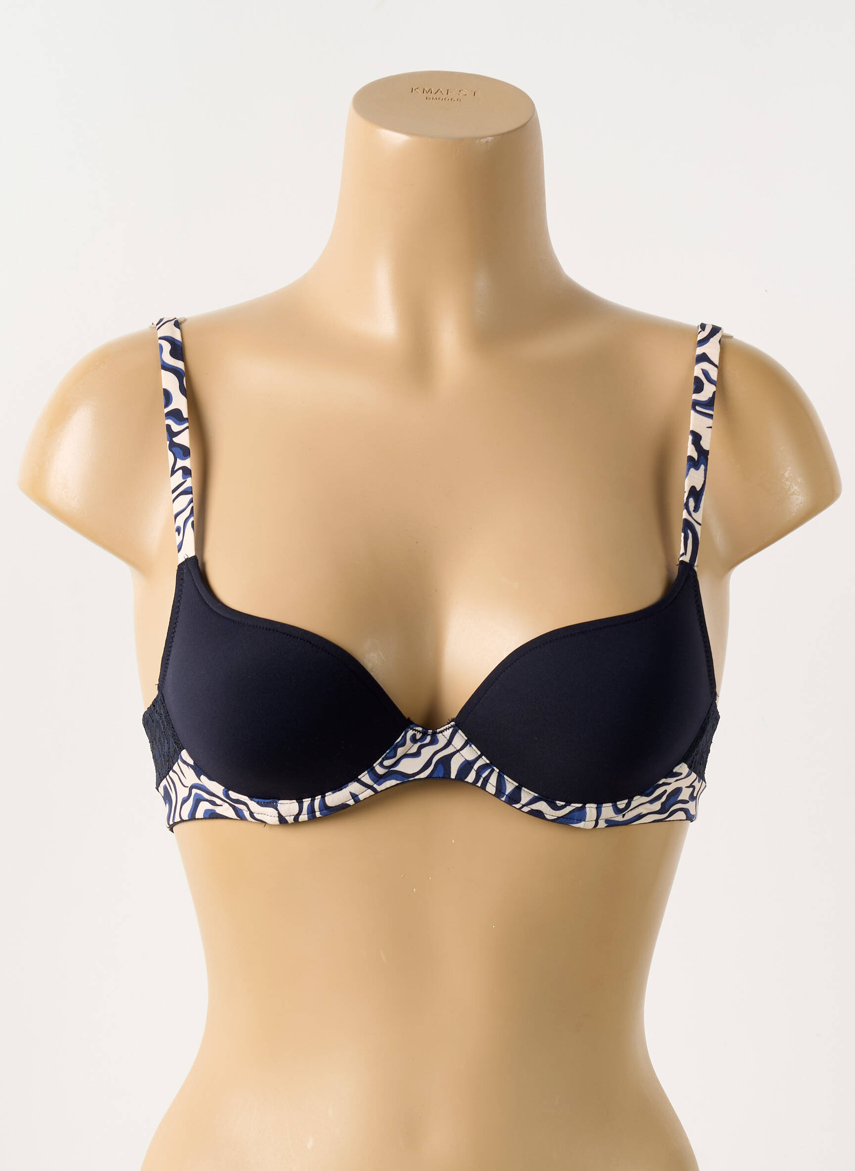 Profitez d'un bon plan unique en vous offrant ce soutien-gorge Marie Jo au style raffiné et au prix réduit. Ce modèle séduit par ses bonnets lisses de couleur bleu marine, rehaussés d'imprimés graphiques délicats sur les bretelles et sous la poitrine, pour une touche de modernité discrète et élégante. Parfait pour allier confort au quotidien et élégance, il permet de s'offrir une pièce de marque sans se ruiner, tout en apportant une note chic à votre lingerie.