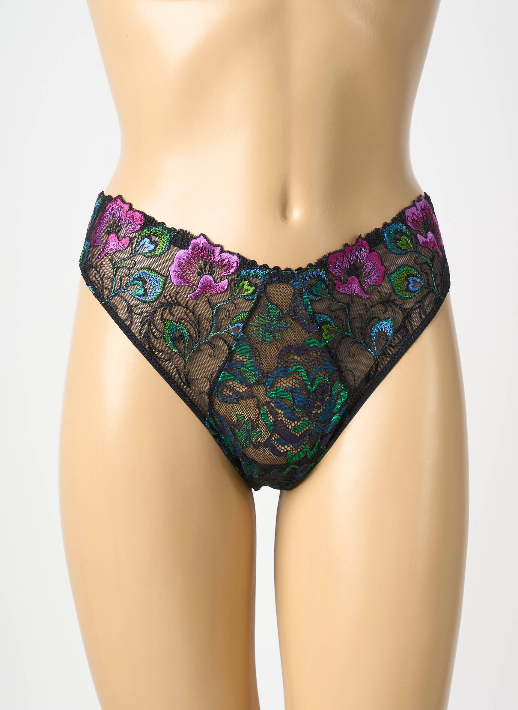 Profitez d’un vrai bon plan avec ce string femme de la marque PRIMADONNA, qui allie délicatesse et raffinement grâce à sa fine dentelle noire ornée de broderies florales colorées. Offrez-vous une pièce élégante et féminine à petit prix, qui sublime vos courbes tout en vous faisant faire des économies sur une marque reconnue pour son savoir-faire et son confort.
