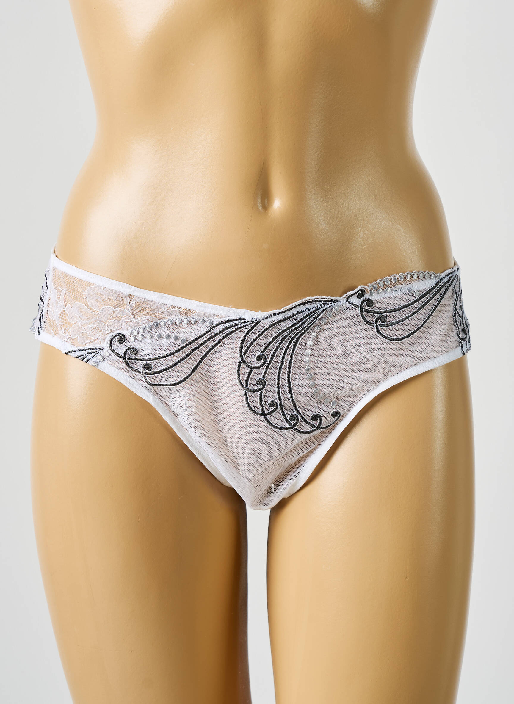Craquez pour ce string WACOAL à petit prix, une occasion idéale de vous offrir de la lingerie élégante sans vous ruiner. Sa délicate transparence agrémentée de broderies noires raffinées sublime la silhouette tout en offrant une touche de sophistication irrésistible, parfait pour allier confort et esthétisme avec style.