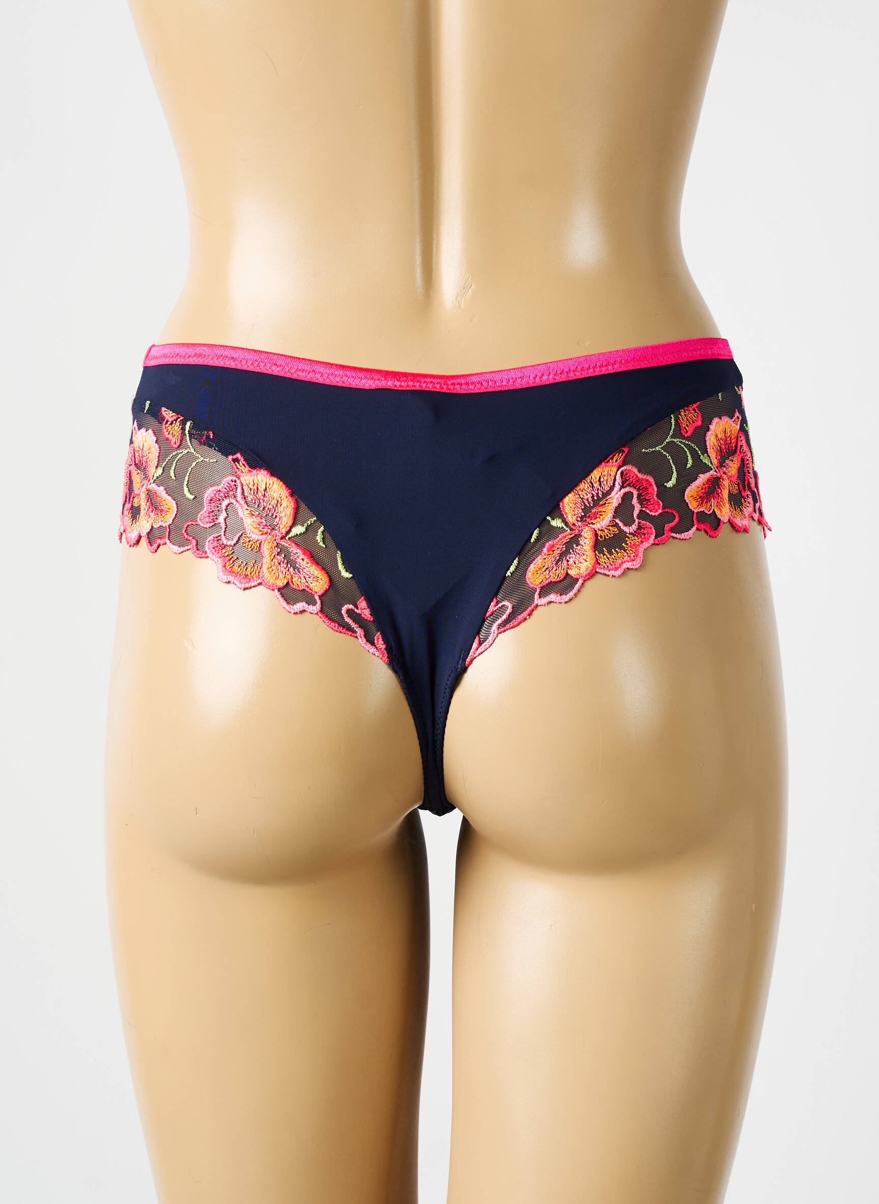 Offrez-vous un look raffiné à petit prix avec ce tanga signé PRIMA DONNA, dont la délicate broderie florale colorée sur un fond bleu marine apporte une touche d’élégance tout en subtilité, le tout rehaussé par une ligne rose vibrante qui souligne parfaitement la silhouette. Ce modèle exclusif vous assure un confort au quotidien, tout en profitant d'une affaire exceptionnelle sur une pièce de lingerie haut de gamme.