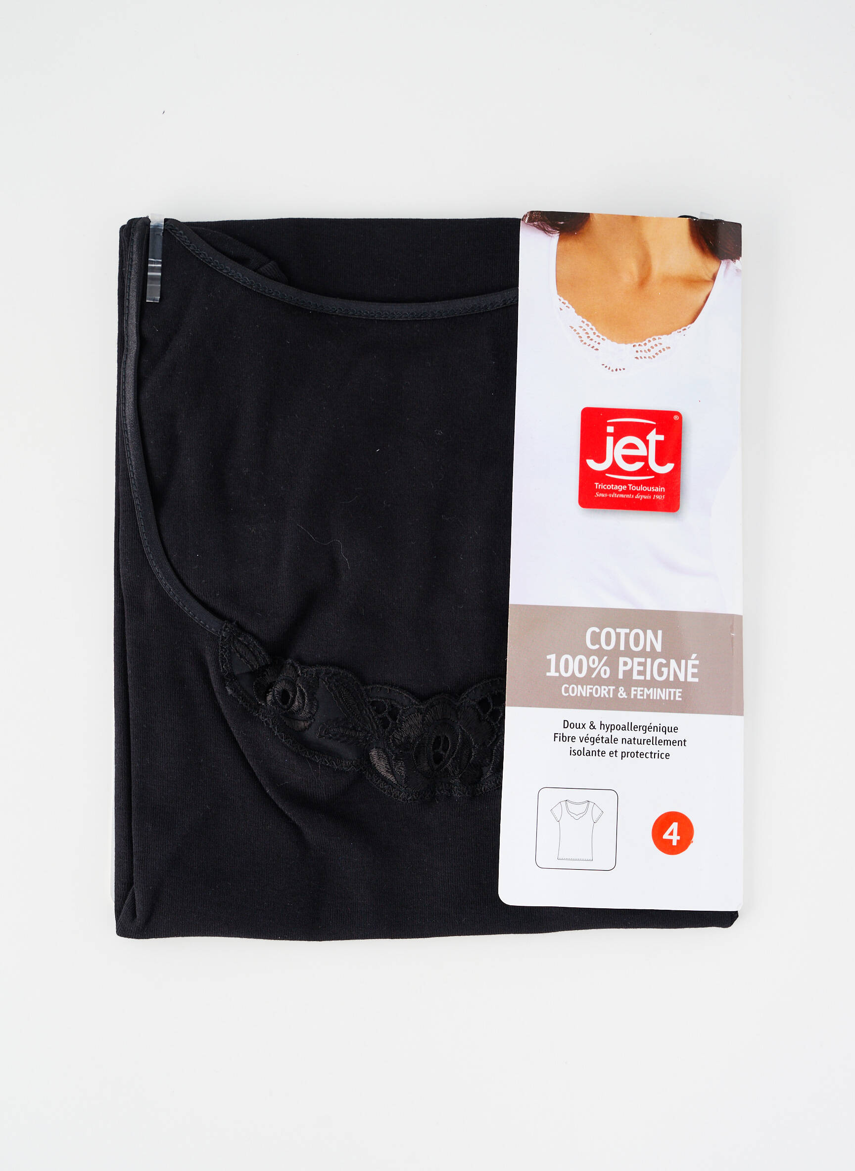 Craquez pour ce caraco noir JET pour femme, une véritable aubaine pour celles qui recherchent confort et élégance sans se ruiner. Sa coupe féminine rehaussée d’une fine dentelle sur l’encolure fait de ce basique un incontournable de votre garde-robe, à petit prix et parfait pour profiter des meilleurs bons plans du moment.