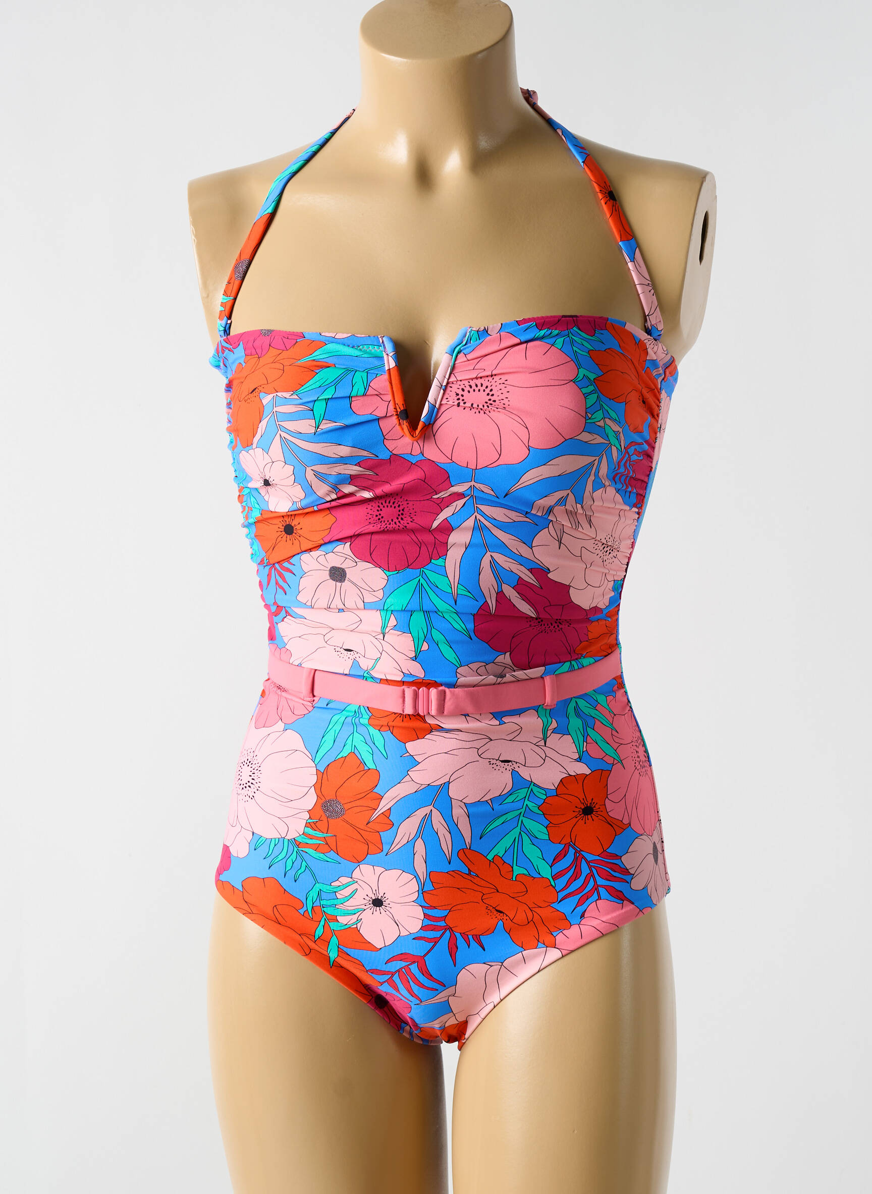 Imaginez un bain de soleil sublimé par une explosion de couleurs éclatantes où chaque fleur raconte une histoire vibrante ; ce maillot de bain 1 pièce CYELL combine une silhouette rétro avec un imprimé floral audacieux aux teintes vives de rouge, rose et bleu, souligné par une découpe en cœur légèrement carrée et un petit détail métallique au centre, tandis qu'une fine ceinture assortie affine la taille pour une allure à la fois élégante et résolument estivale.