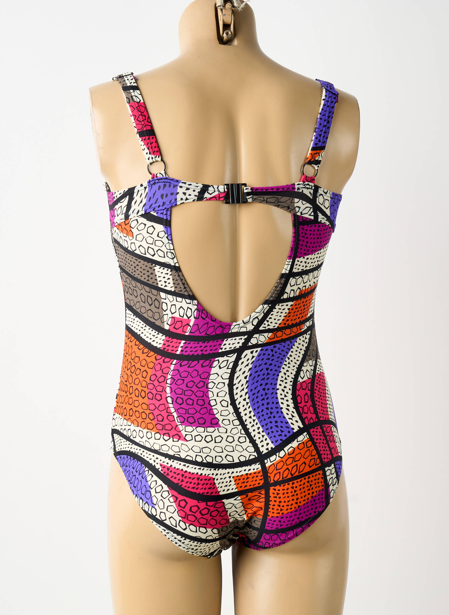 Profitez d’un bon plan irrésistible avec ce maillot de bain 1 pièce de la marque ROSE POMME, qui séduit par son imprimé géométrique coloré mêlant violet, orange, rouge et noir pour une allure dynamique et moderne. Sa coupe flatteuse avec bretelles larges et bonnets dessinés assure à la fois confort et maintien, parfait pour sublimer votre silhouette sans vous ruiner. Ce modèle stylé permet d’adopter un look original à petit prix, idéal pour vos journées à la plage ou à la piscine.