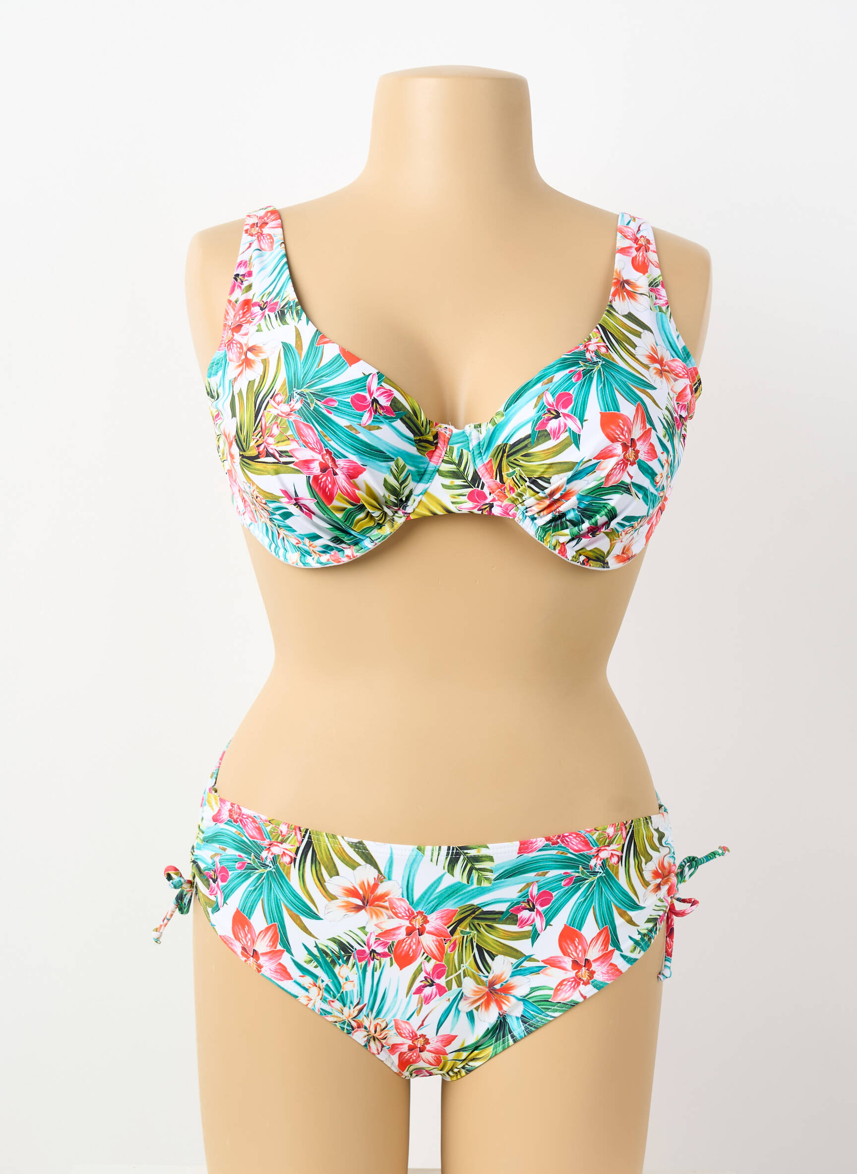 Craquez pour ce maillot de bain 2 pièces LAGON BLEU à prix mini, idéal pour celles qui veulent se faire plaisir sans se ruiner. Son imprimé fleuri aux couleurs vibrantes apporte une touche exotique, tandis que la forme avec armatures assure un maintien optimal et un joli galbe. Les liens ajustables sur les côtés du bas de maillot permettent de personnaliser la coupe selon vos envies, pour un confort sur mesure tout l'été. Ce modèle tendance et abordable est parfait pour profiter de la plage ou de la piscine avec style sans dépenser trop.