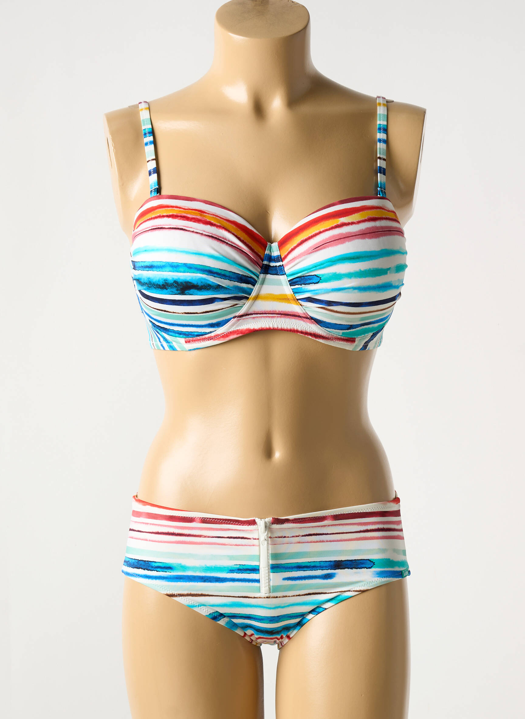 Profitez d’un excellent rapport qualité-prix avec ce maillot de bain 2 pièces de la marque LIDEA, affichant un motif rayé aux couleurs fraîches et estivales qui apporte dynamisme et élégance à vos sorties plage ou piscine. Le haut à coques galbantes assure un bon maintien tout en restant féminin, tandis que la culotte taille haute, ornée d’un effet ceinture à l’avant, offre confort et style à petit prix. Un vrai bon plan pour se faire plaisir avec un maillot tendance sans se ruiner.