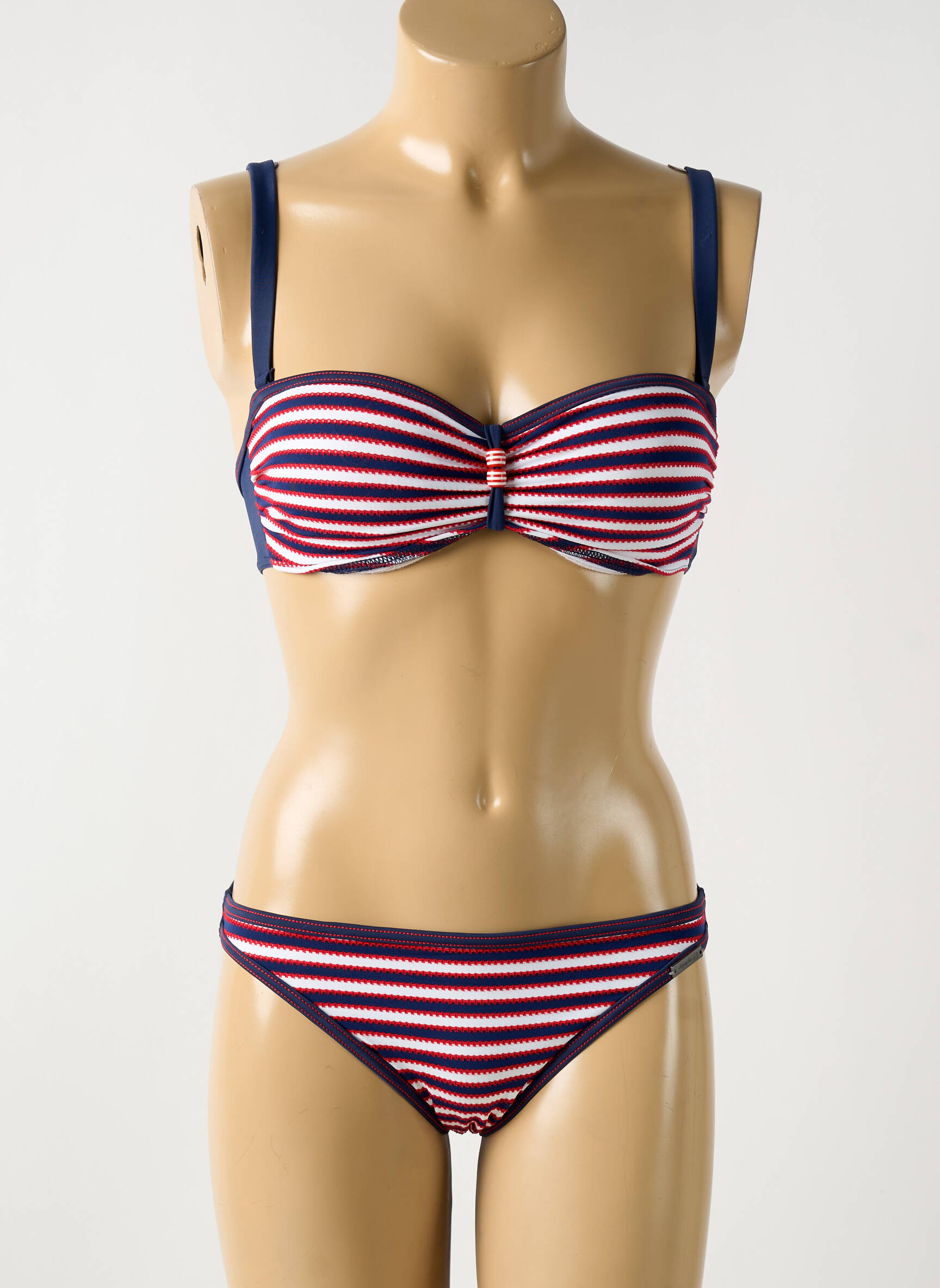 Profitez d’un véritable bon plan avec ce maillot de bain 2 pièces OLYMPIA pour femme, qui vous offre tout le style dont vous rêvez à petit prix. Son motif rayé tricolore rouge, blanc et bleu apporte une touche marine ultra tendance, tandis que la forme bandeau avec bretelles ajustables et la culotte assortie garantissent maintien et élégance sur la plage comme au bord de la piscine. Idéal pour celles qui veulent se faire plaisir sans se ruiner, ce maillot est parfait pour sublimer votre silhouette tout en maîtrisant votre budget.