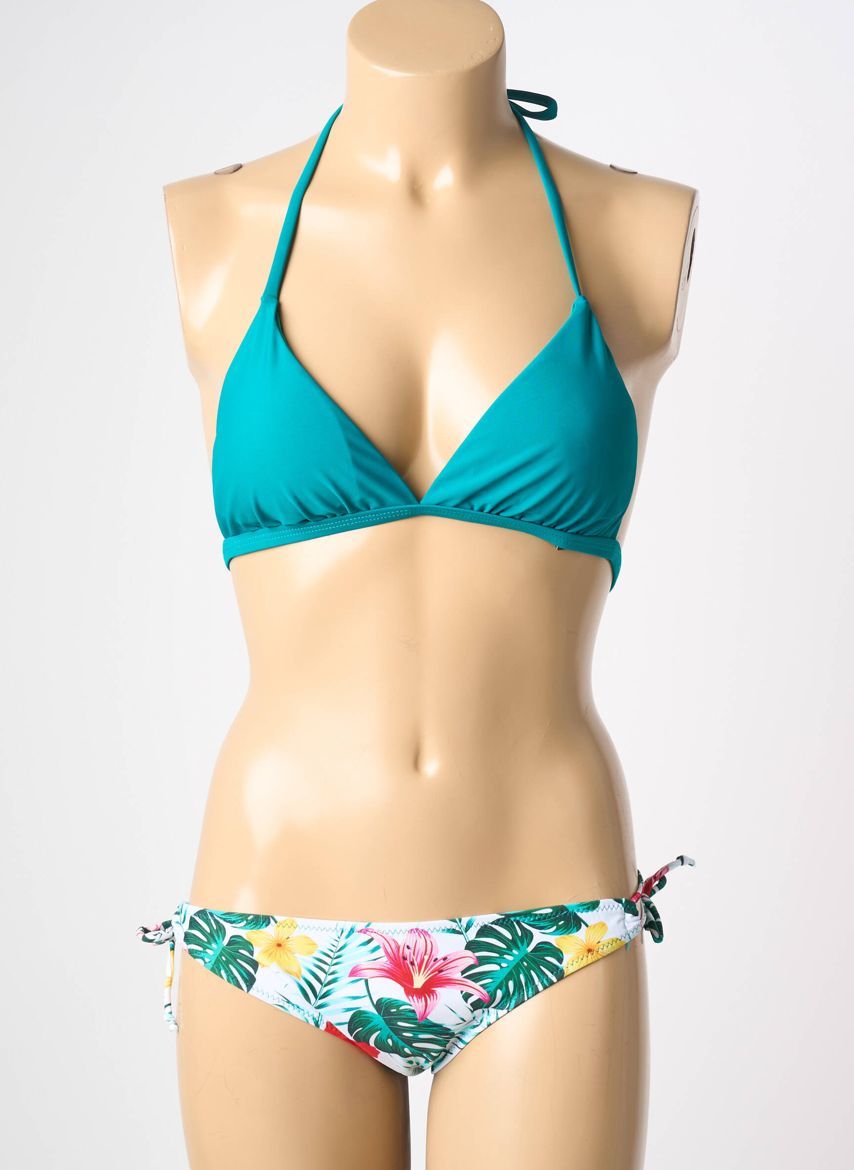Saisissez l’occasion de profiter d’un maillot de bain 2 pièces ultra tendance de la marque VERY ZEN à prix déstockage. Son haut triangle couleur turquoise sublime parfaitement le décolleté, tandis que le bas à motif fleuri et tropical, avec ses liens à nouer sur les côtés, apporte une touche de fraîcheur idéale pour l’été. Ce modèle au style moderne et féminin, vendu à prix mini, est parfait pour allier style et économies sans compromis sur l’allure.