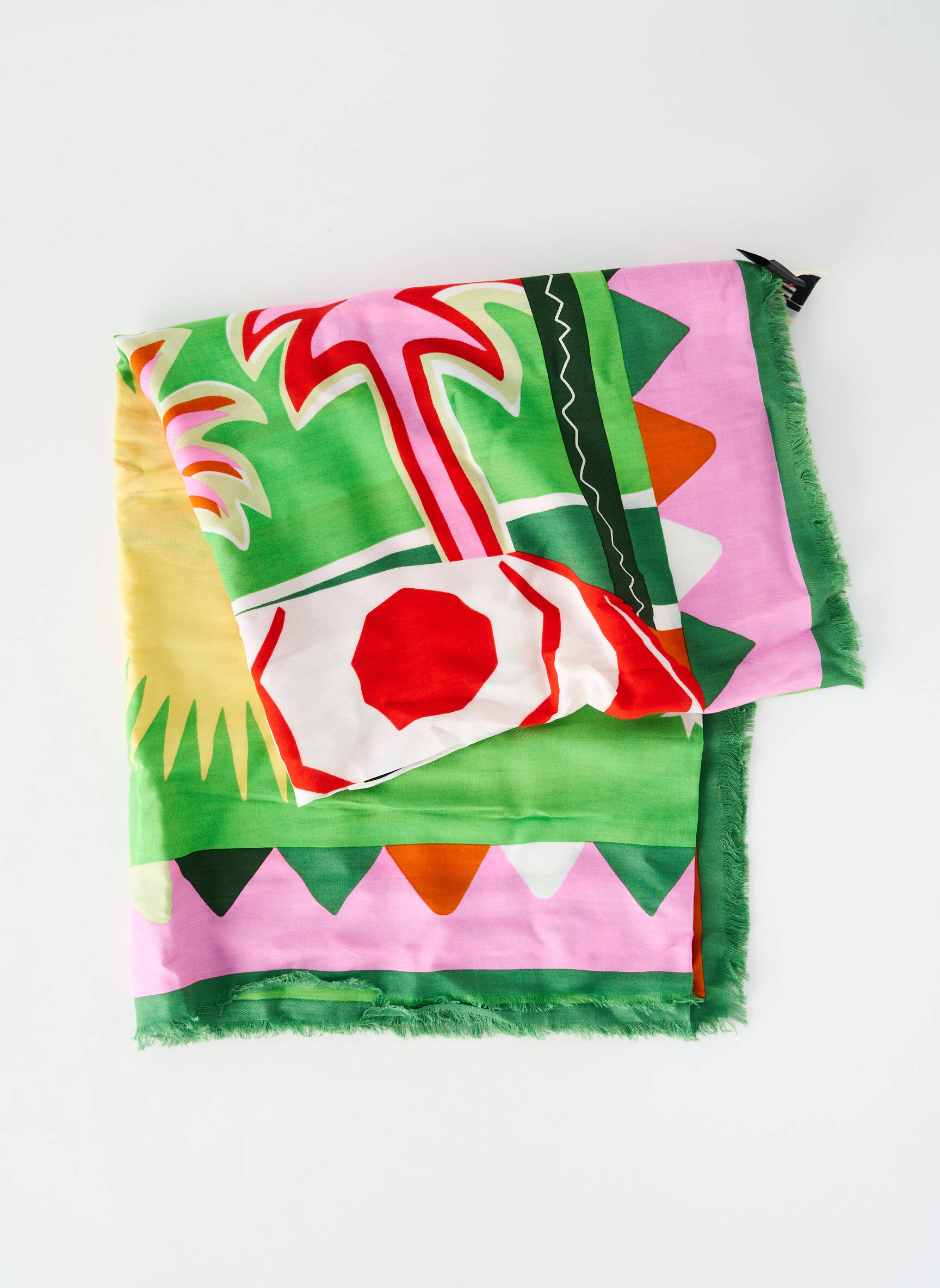 Craquez pour ce paréo WILD pour femme, une pièce colorée à tout petit prix qui apporte instantanément une touche exotique à votre été. Ses motifs tropicals, mêlant palmiers et formes géométriques sur des tons vifs de vert, rose, jaune et rouge, en font un accessoire original et tendance à petit budget, parfait pour dynamiser toutes vos tenues de plage sans vous ruiner. Saisissez cette superbe occasion de vous faire plaisir avec un accessoire stylé à prix malin.