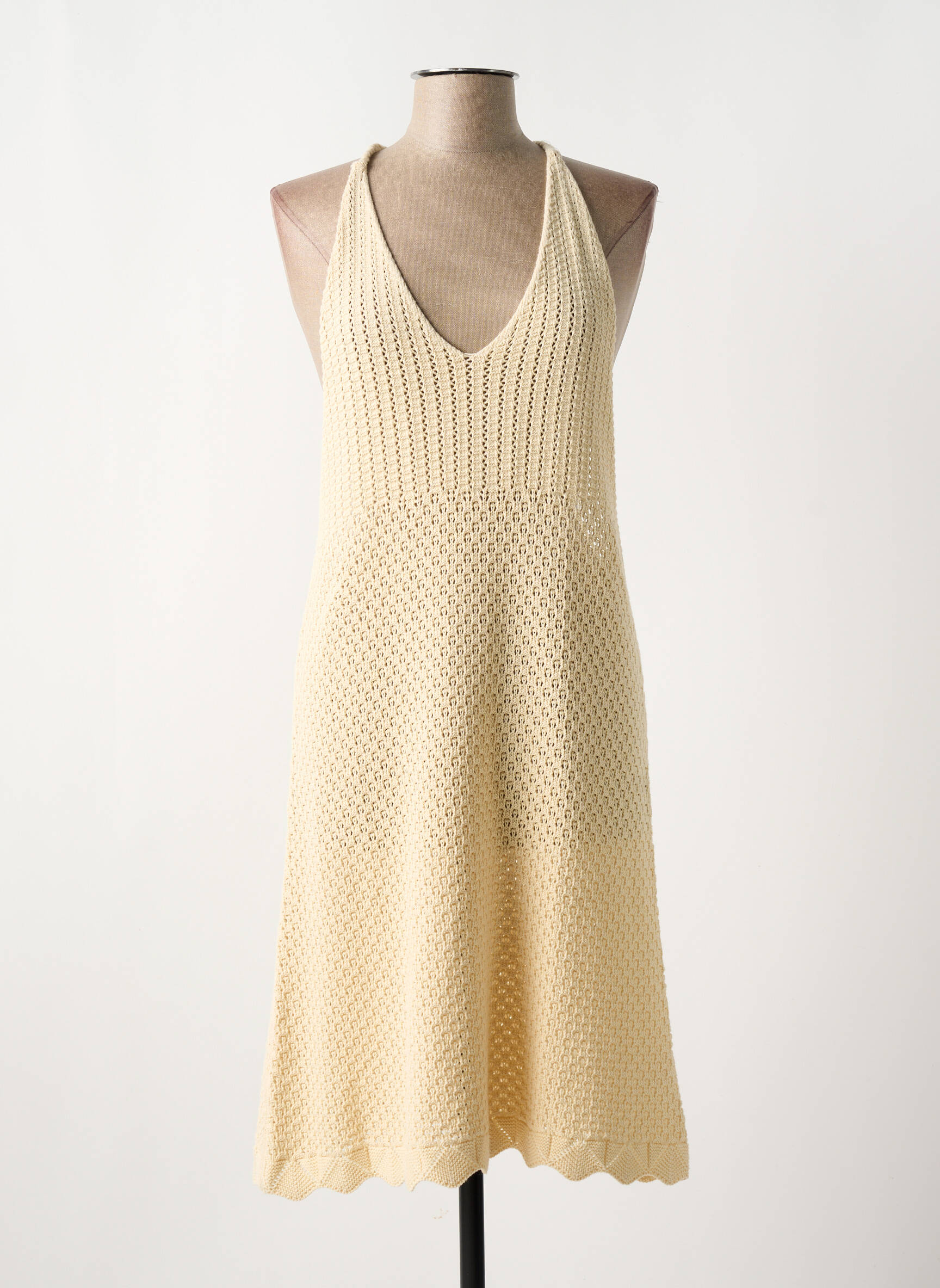 Craquez pour cette robe de plage signée MOLLY BRACKEN à prix mini et sublimez vos journées au soleil avec son joli tricot ajouré et sa coupe évasée raffinée. Son décolleté plongeant et sa maille délicate apportent une touche de fraîcheur idéale pour l’été, parfaite pour celles qui recherchent à la fois élégance et bonnes affaires.
