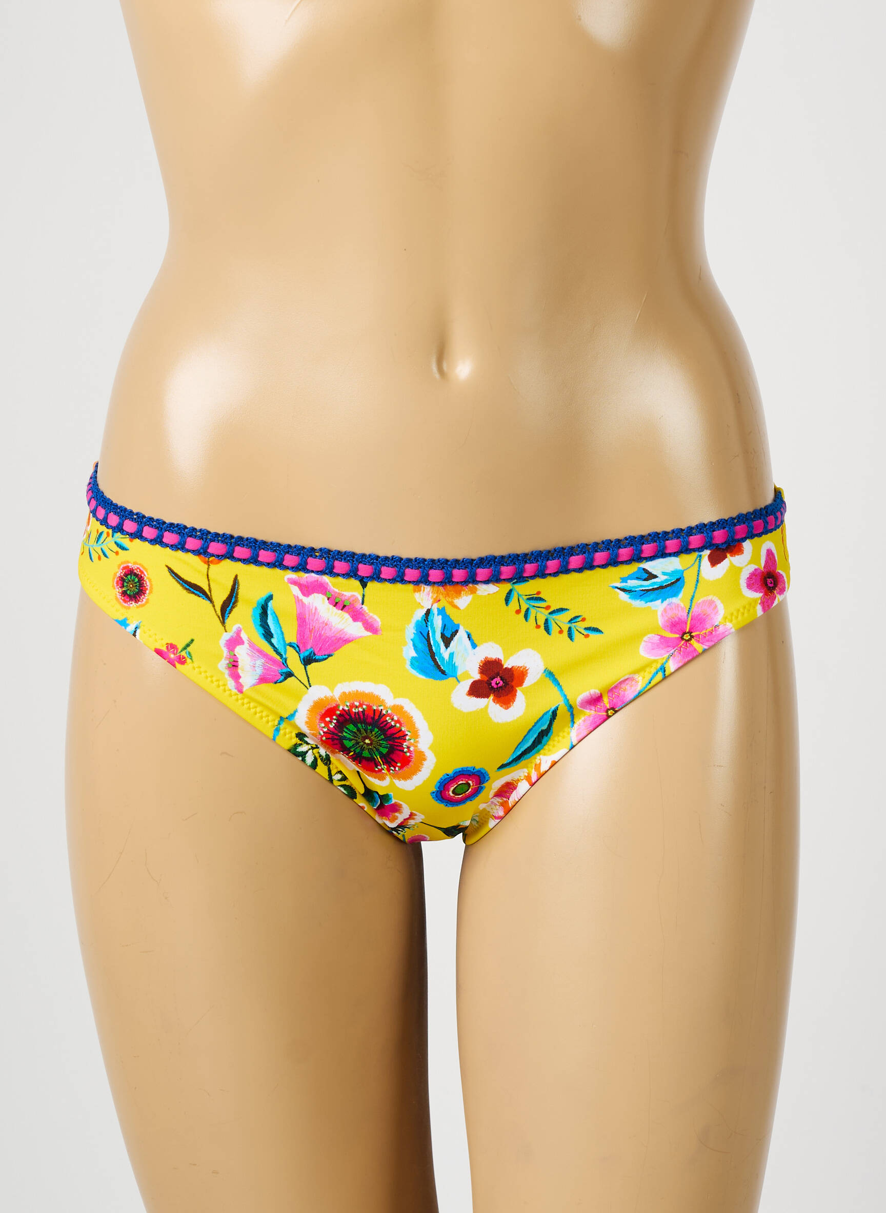 Craquez pour ce bas de maillot de bain femme ANTIGEL à prix mini, une véritable opportunité pour ajouter une touche de pep’s à votre collection estivale sans vous ruiner. Avec son fond jaune éclatant rehaussé de motifs floraux multicolores et sa délicate finition à la taille soulignée d’un galon fantaisie, il offre un look solaire et joyeux idéal pour les vacances, tout en restant accessible à tous les budgets.