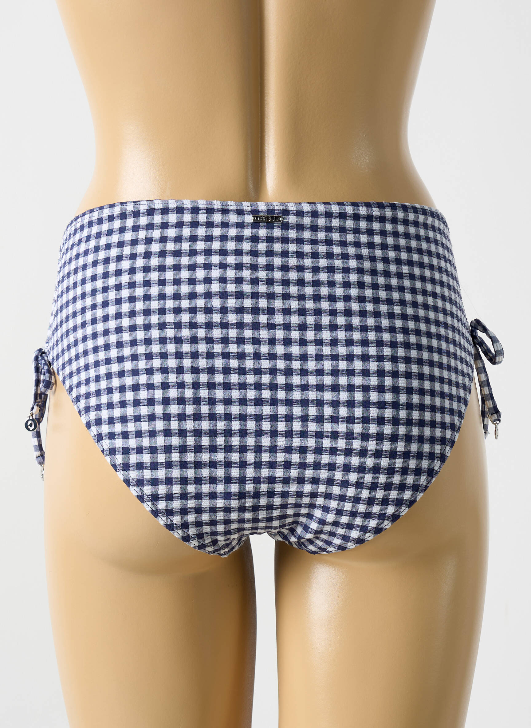 Et si l'élégance se trouvait dans le détail le plus simple ? Ce bas de maillot de bain CYELL pour femme illumine la silhouette avec son motif vichy classique bleu marine et blanc, tandis que sa taille mi-haute assure un confort optimal. Les petits liens ajustables sur les côtés ajoutent une touche délicate et permettent de personnaliser la coupe, sublimant subtilement les hanches avec grâce.