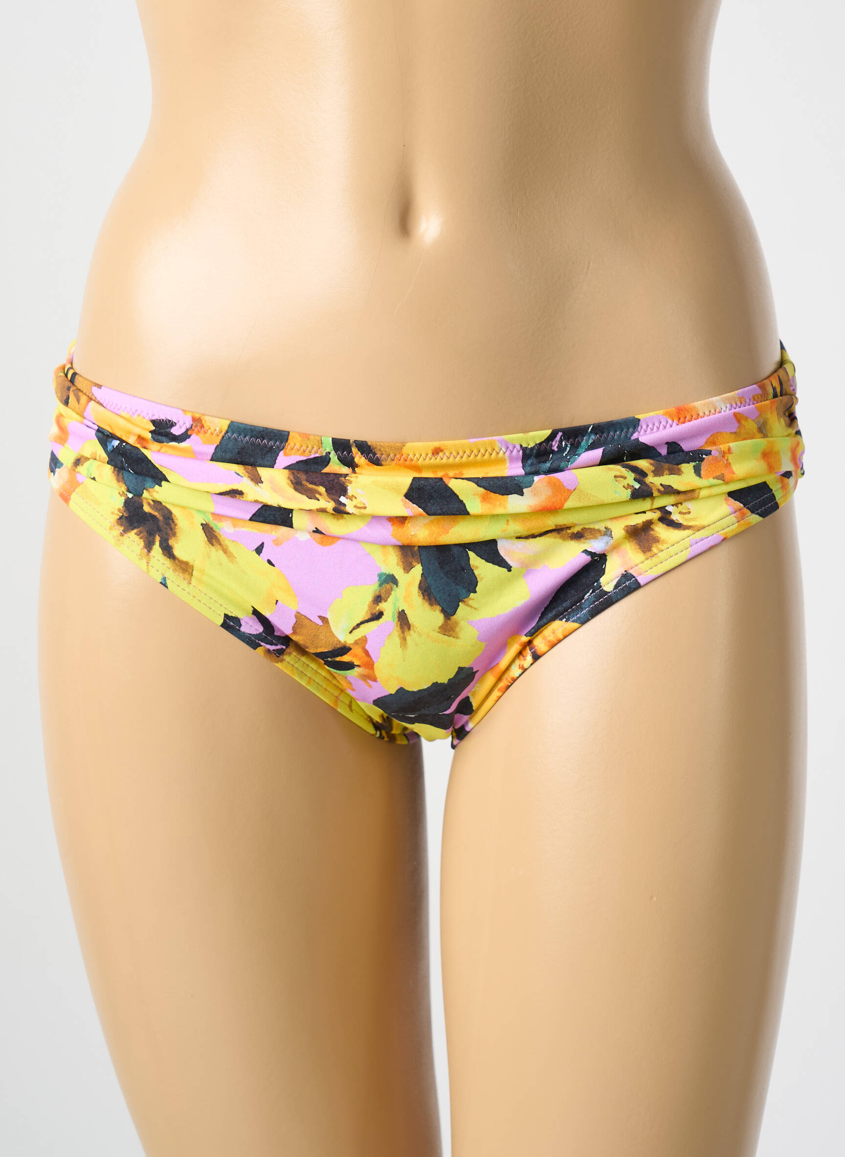 Et si le jaune était la nouvelle couleur incontournable de votre été ? Ce bas de maillot de bain CYELL pour femme séduit par son imprimé floral audacieux mêlant des touches de jaune vif, de noir élégant et de rose tendre, apportant une énergie chaleureuse et solaire à votre plage ou piscine. Sa coupe classique est légèrement froncée sur les côtés, soulignant subtilement la silhouette tout en offrant un confort optimal pour vos journées ensoleillées.