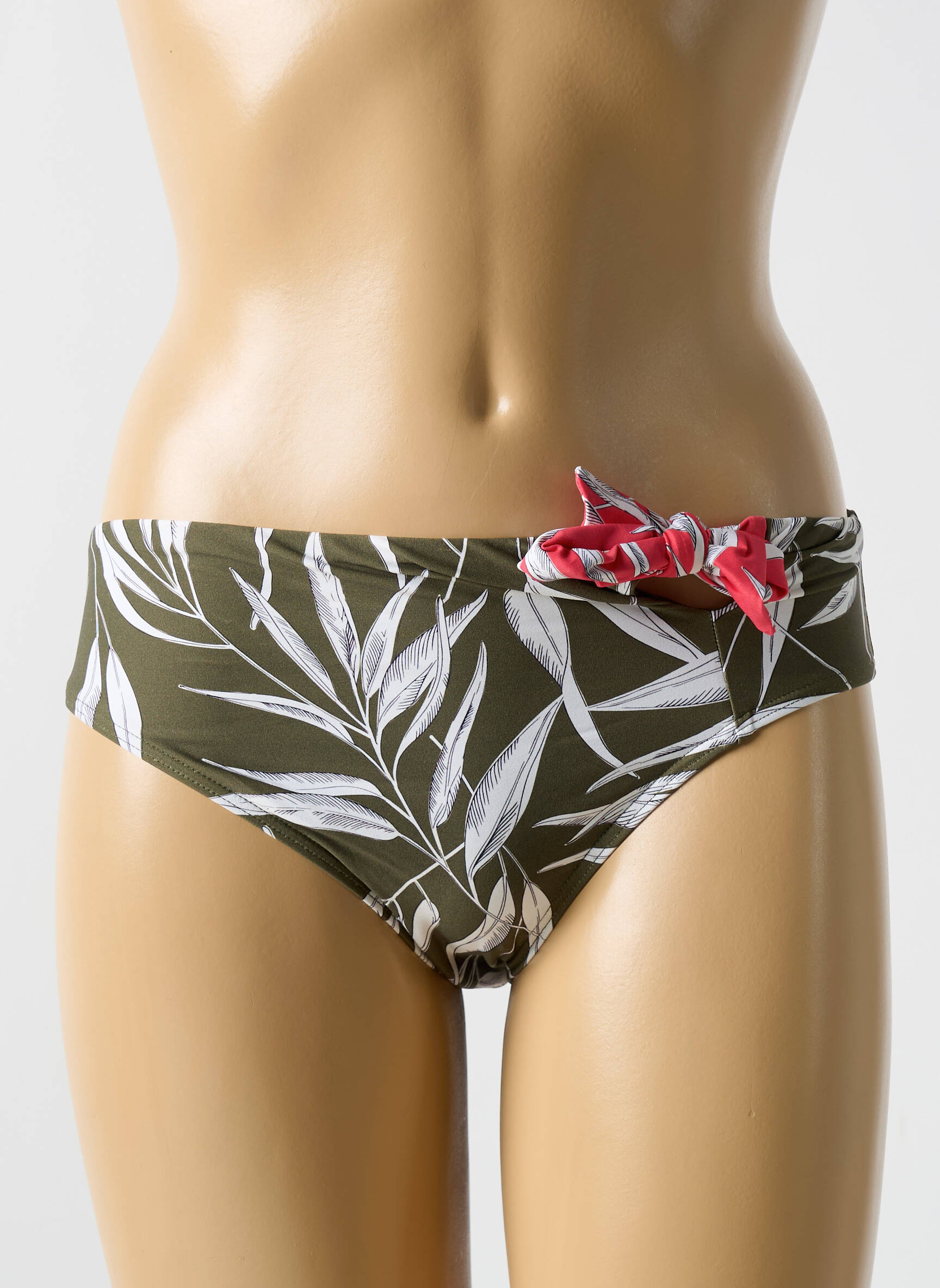 Et si votre maillot devenait une véritable invitation au voyage ? Ce bas de maillot de bain signé CYELL séduit par son imprimé feuillage aux teintes olive rehaussé de feuilles blanches délicatement dessinées, tandis qu’un détail noué à la taille apporte une touche de contraste en rouge vif pour sublimer la silhouette avec charme et féminité.