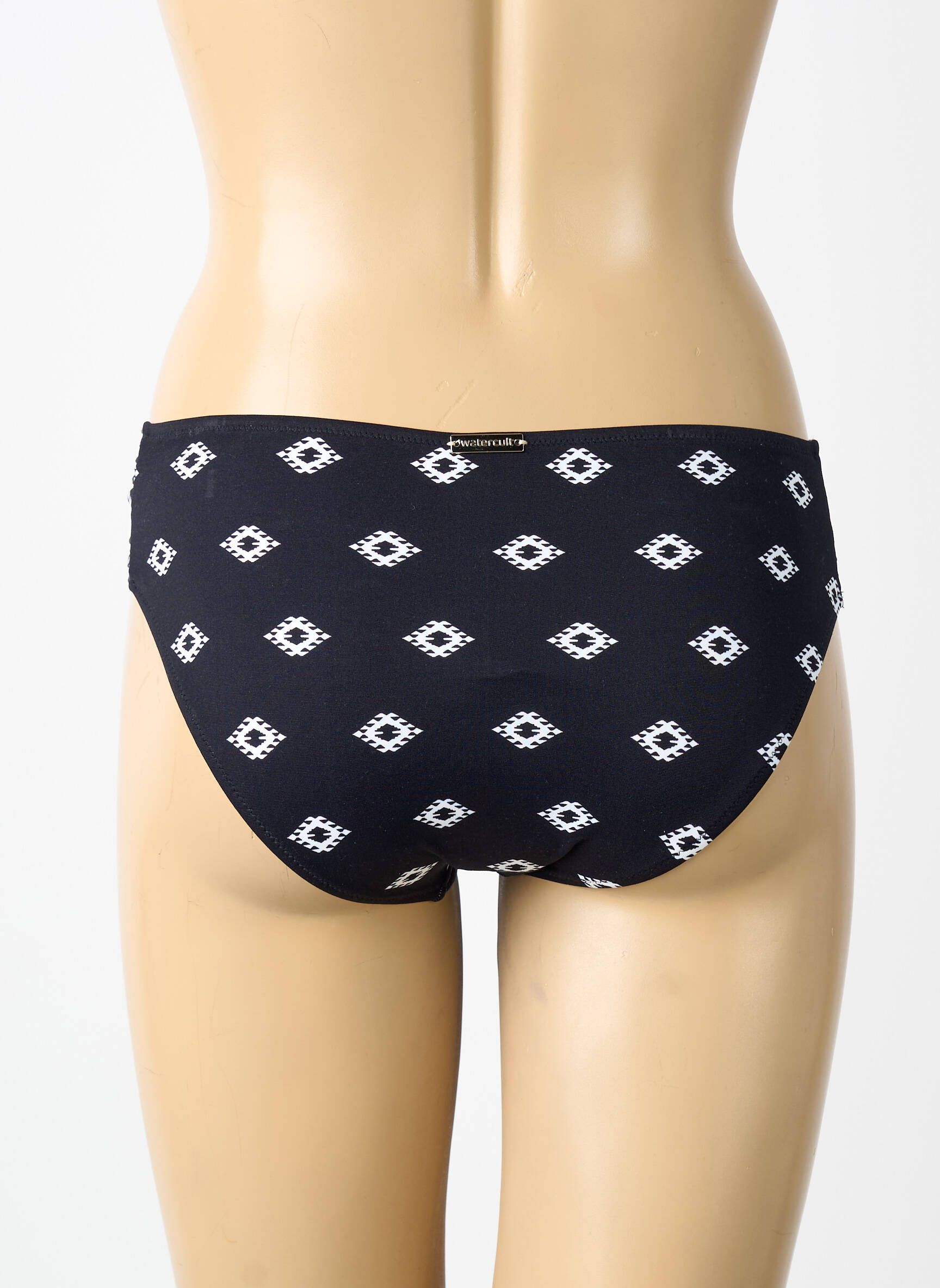 Profitez d’un bas de maillot de bain WATERCULT à petit prix et donnez du style à votre été sans vous ruiner grâce à ce modèle noir orné de motifs géométriques blancs, offrant une allure élégante et tendance en bord de mer comme à la piscine tout en épousant parfaitement la silhouette pour un confort absolu.