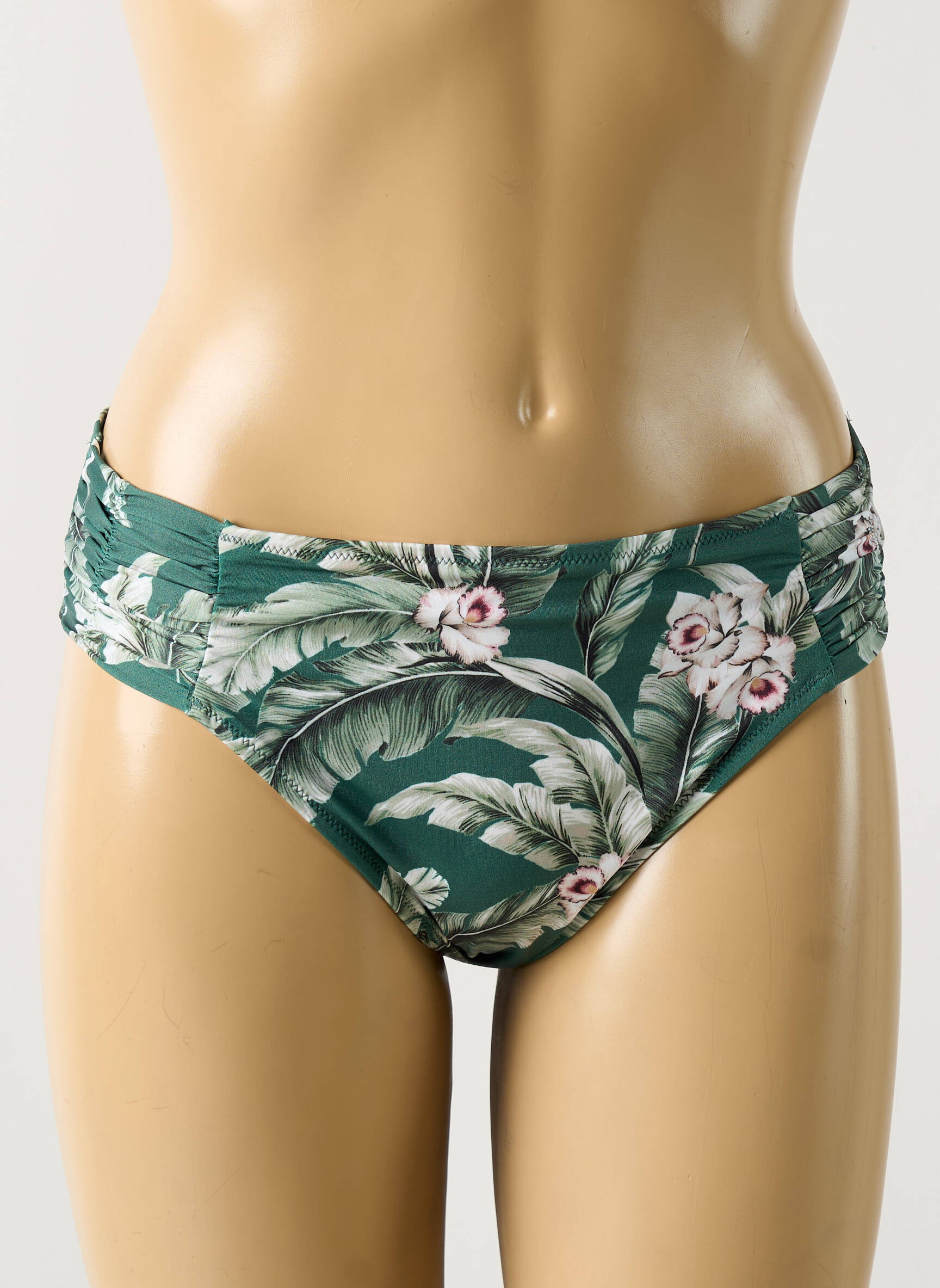 Craquez pour ce bas de maillot de bain WATERCULT pour femme, à prix mini, idéal pour celles qui veulent se faire plaisir sans se ruiner. Sa coupe féminine et son imprimé tropical aux teintes vertes et florales apportent une touche d’exotisme irrésistible à vos journées à la plage, tout en assurant un style tendance grâce aux détails froncés sur les côtés. Voilà un bon plan pour un look chic et actuel à petit prix !