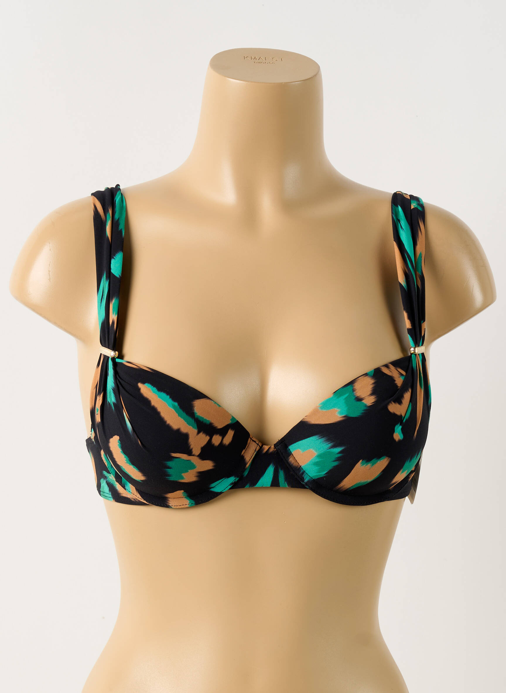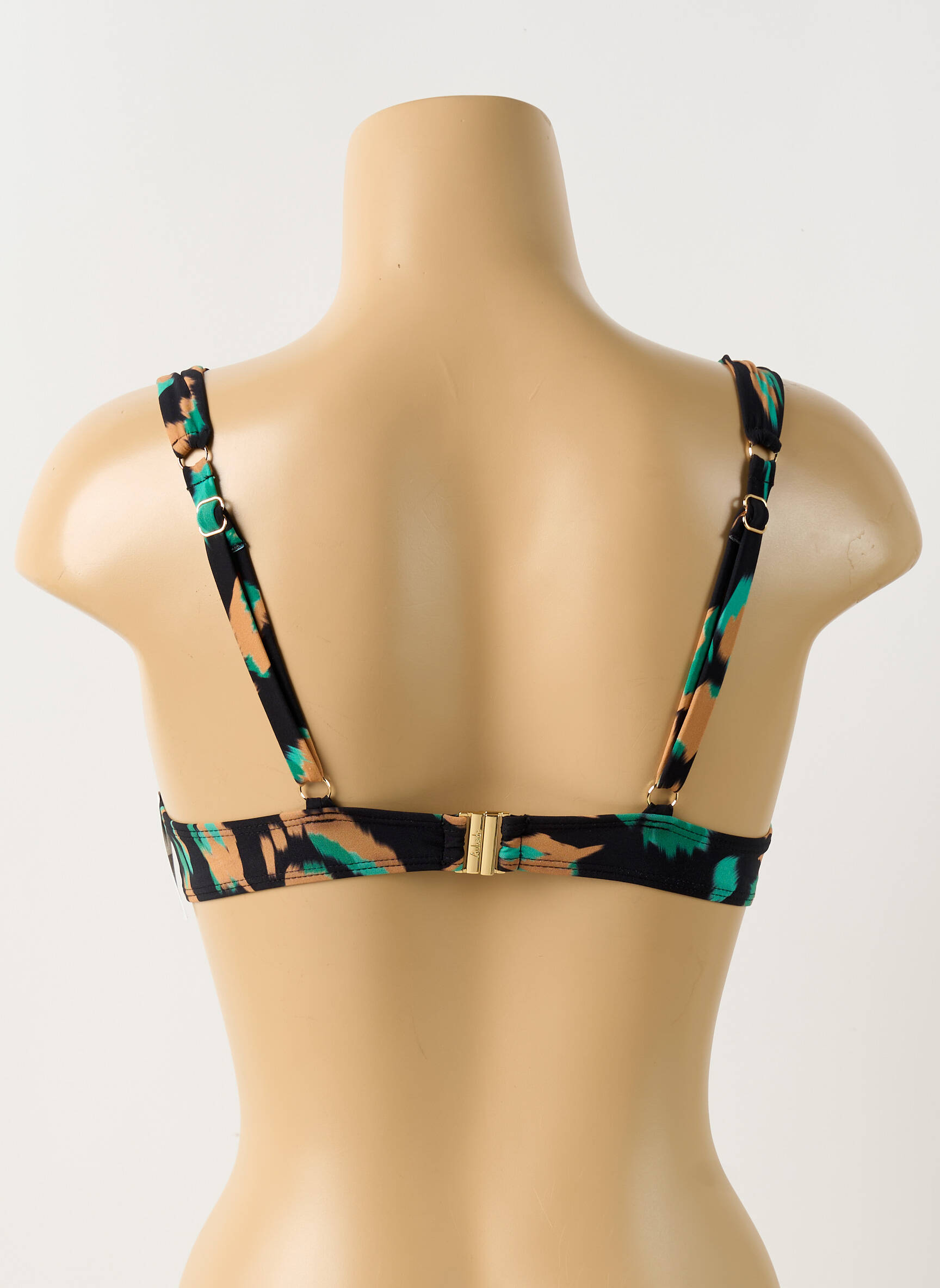 Profitez d’un haut de maillot de bain AUBADE pour femme à prix mini, une occasion idéale de vous offrir une pièce de créateur sans vous ruiner. Ce modèle séduit par son imprimé moderne aux nuances de vert et de bleu sur fond noir, ses bretelles larges pour un maintien confortable et sa forme élégante qui met la silhouette en valeur, parfait pour allier style et économies sur la plage comme à la piscine.