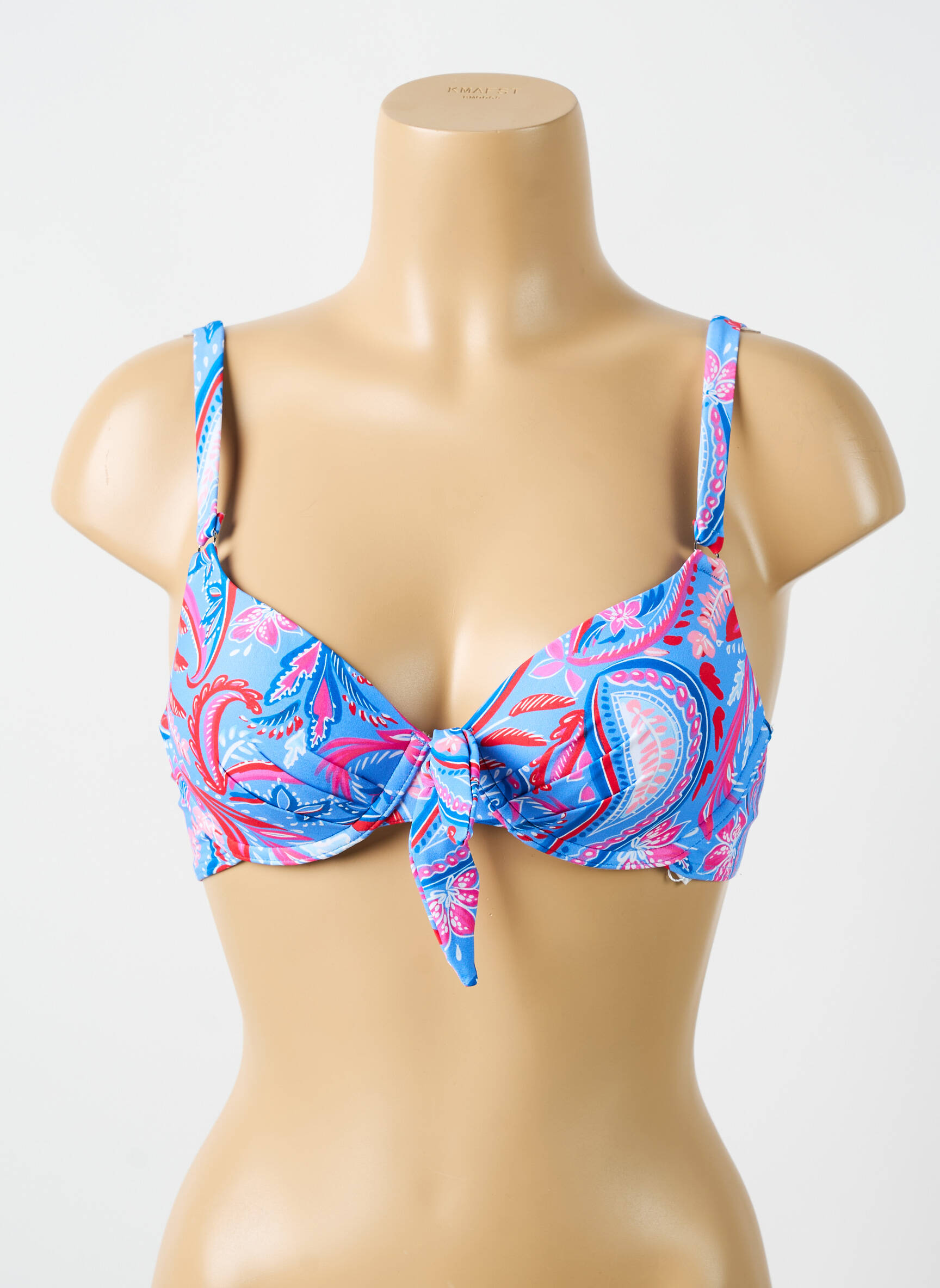 Comme une brise marine capturée dans un tissu, ce haut de maillot de bain CYELL dévoile un imprimé paisley vibrant où dominent des nuances de bleu lumineux mêlées à des touches roses et corail, tandis que son nœud central apporte une touche délicieusement féminine et flirte avec une élégance décontractée, idéale pour sublimer la silhouette tout en offrant un maintien confortable.