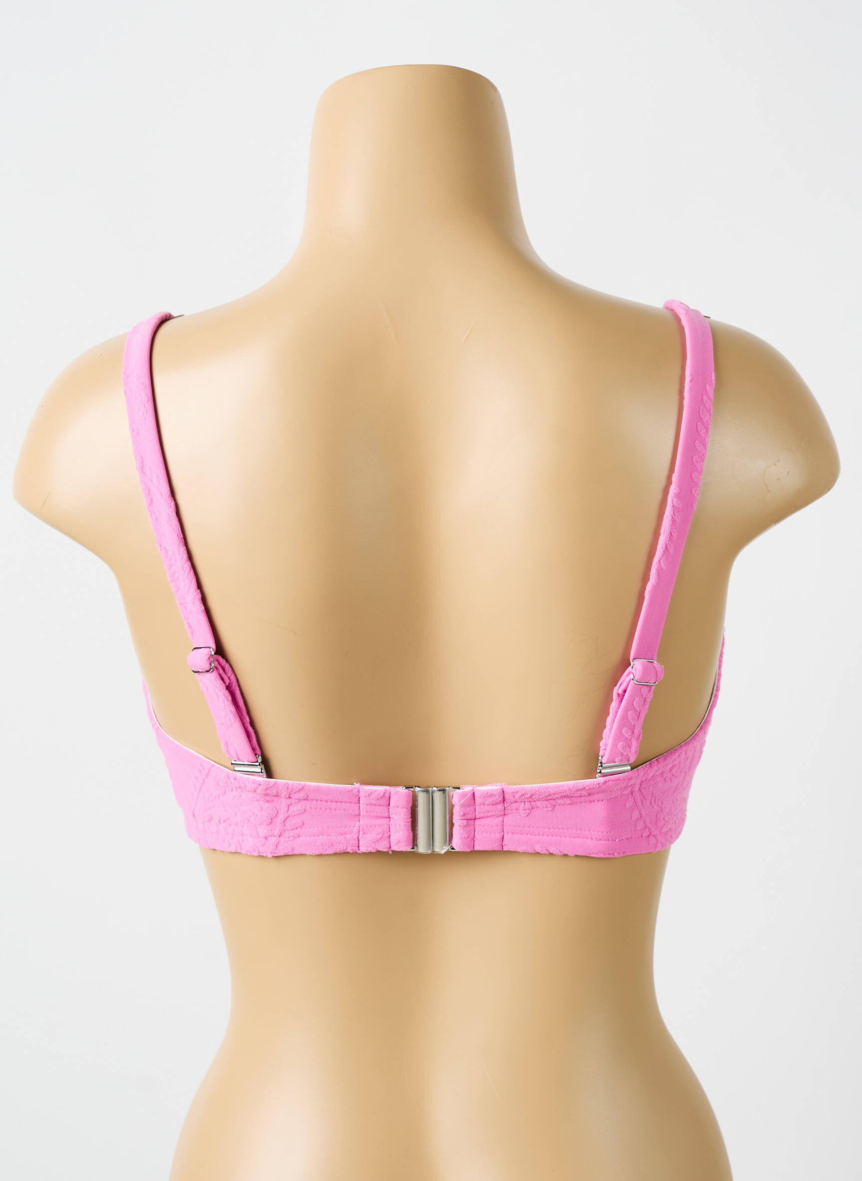 Comme une promesse de douceur et d'élégance estivale, ce haut de maillot de bain CYELL pour femme séduit par son rose vif subtilement texturé de motifs délicats en relief, offrant une coupe sophistiquée avec ses bonnets légèrement rembourrés qui sculptent la silhouette tandis que son lien central apporte une touche ajustable et féminine, parfait pour allier confort et style sous le soleil.