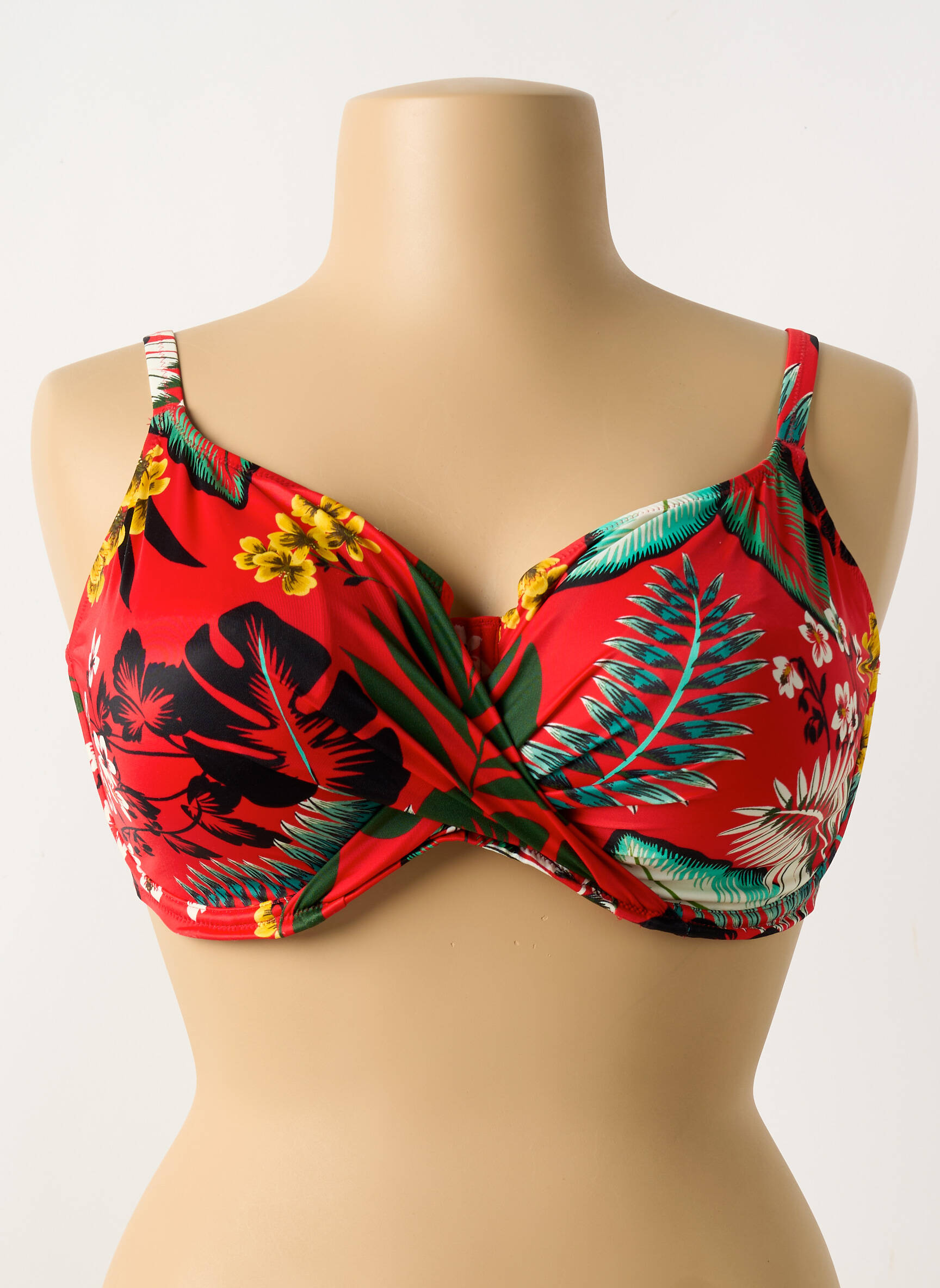 Craquez pour ce haut de maillot de bain FANTASIE pour femme, une véritable affaire à tout petit prix. Sa teinte rouge éclatante est sublimée par un imprimé tropical aux couleurs vibrantes, mêlant feuillages exotiques et fleurs pour un look estival plein de fraîcheur. La coupe enveloppante assure un maintien optimal tout en galbant la silhouette, idéale pour profiter du soleil en toute confiance. Ne ratez pas ce bon plan pour un style vacances tendance sans vous ruiner !