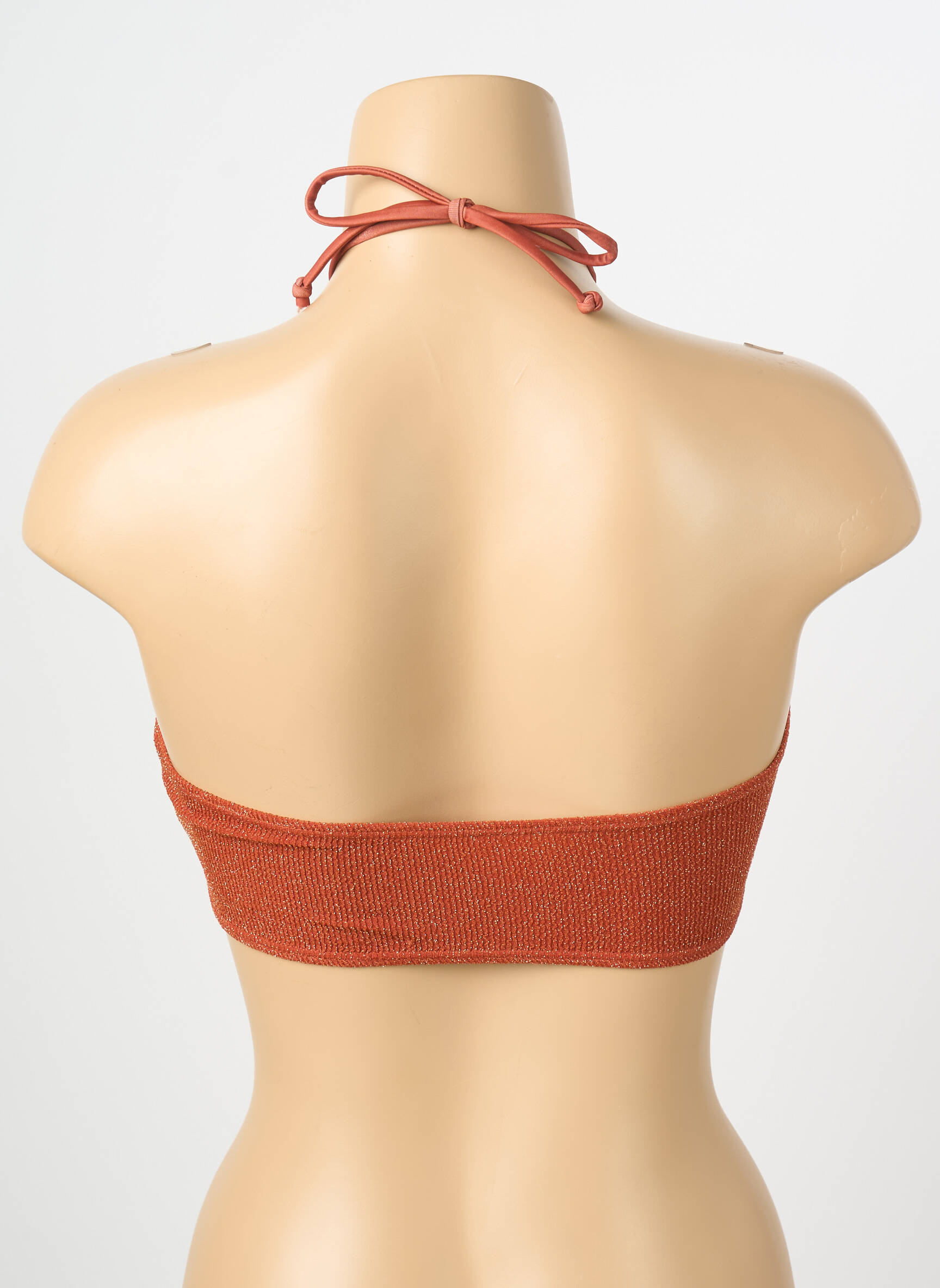 Craquez pour ce haut de maillot de bain LES TROPEZIENNES PAR M.BELARBI pour femme, parfait pour profiter des plages sans se ruiner grâce à une offre à prix doux. Son coloris terracotta ultra tendance et sa texture légèrement texturée donnent un style à la fois naturel et sophistiqué, mis en valeur par une coupe bandeau froncée sur le devant qui assure un maintien confortable et une allure chic. Ce modèle, doté d'un lien à nouer autour du cou, offre un vrai bon plan pour celles qui recherchent un maillot de bain élégant et abordable.
