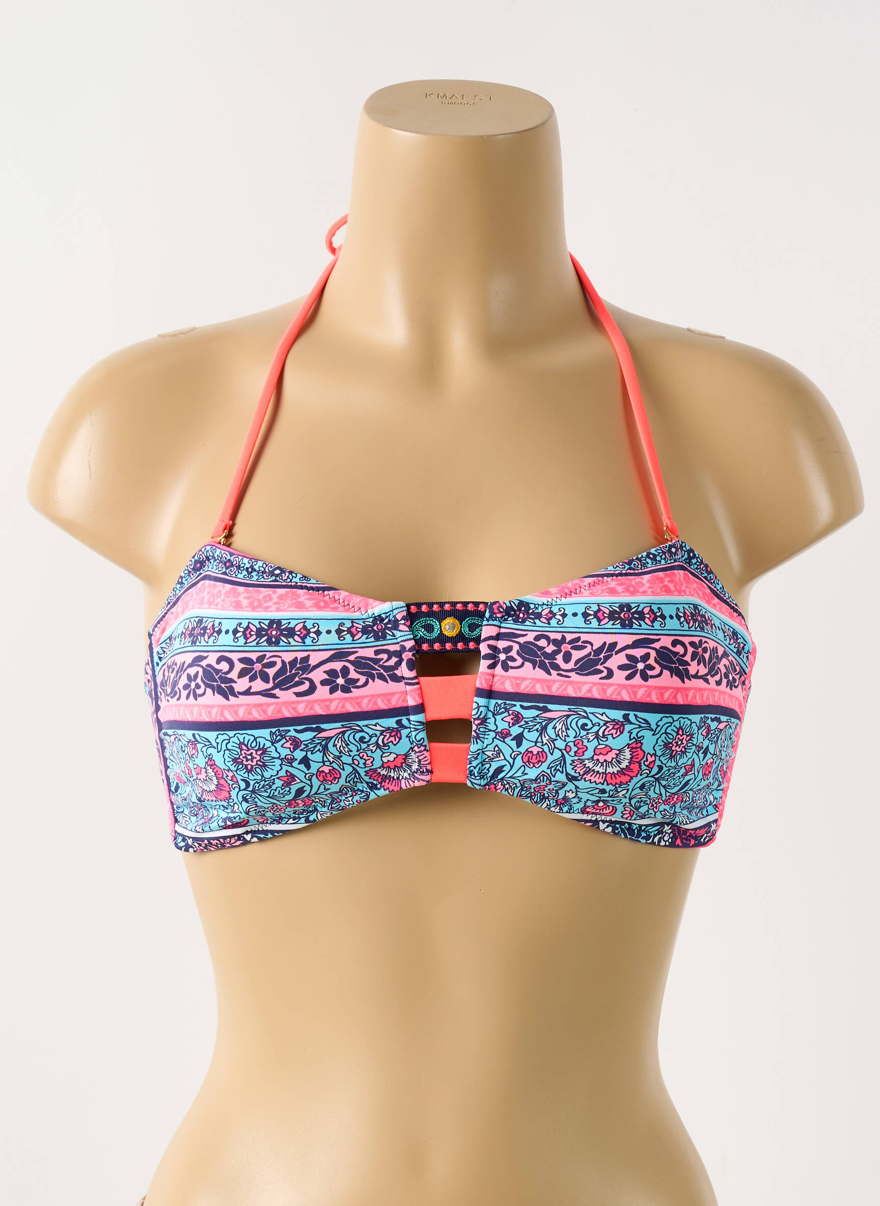 Imaginez un coucher de soleil tropical capturé dans un maillot de bain : ce haut signé PHAX pour femme enveloppe la silhouette dans un bandeau délicatement froncé au centre, orné de fines lanières colorées qui s’entrelacent avec grâce. Le motif éclatant combine des rayures aux teintes corail, turquoise et violet, mêlées à des imprimés floraux et géométriques qui évoquent l’esprit vibrants des plages exotiques, tandis que l’attache nuque fine offre un maintien ajusté et confortable, parfait pour profiter de chaque instant au bord de l’eau avec élégance et légèreté.
