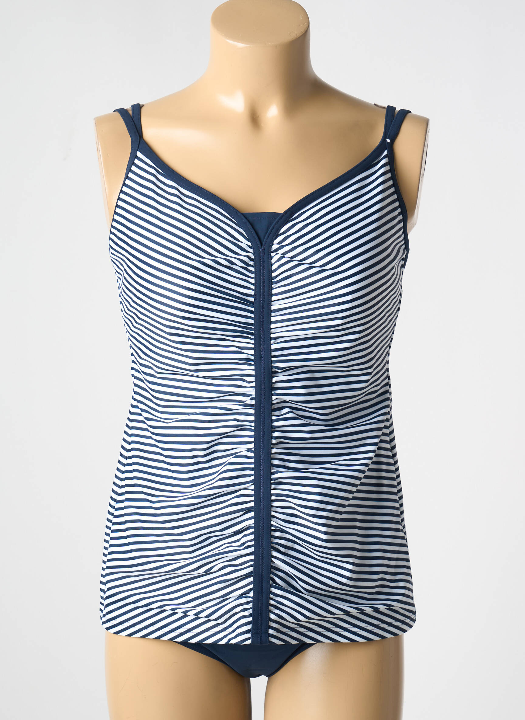 Craquez pour ce tankini SUNFLAIR pour femme, une vraie opportunité à petit prix pour donner du style à vos journées à la plage ou à la piscine. Ce modèle séduit par son joli motif rayé bleu marine et blanc, sa coupe flatteuse avec effet drapé sur le devant et ses bretelles fines qui assurent un maintien confortable tout en restant féminin. Profitez d’un maillot élégant et tendance signé par une grande marque, sans vous ruiner, pour allier style et économies cet été.