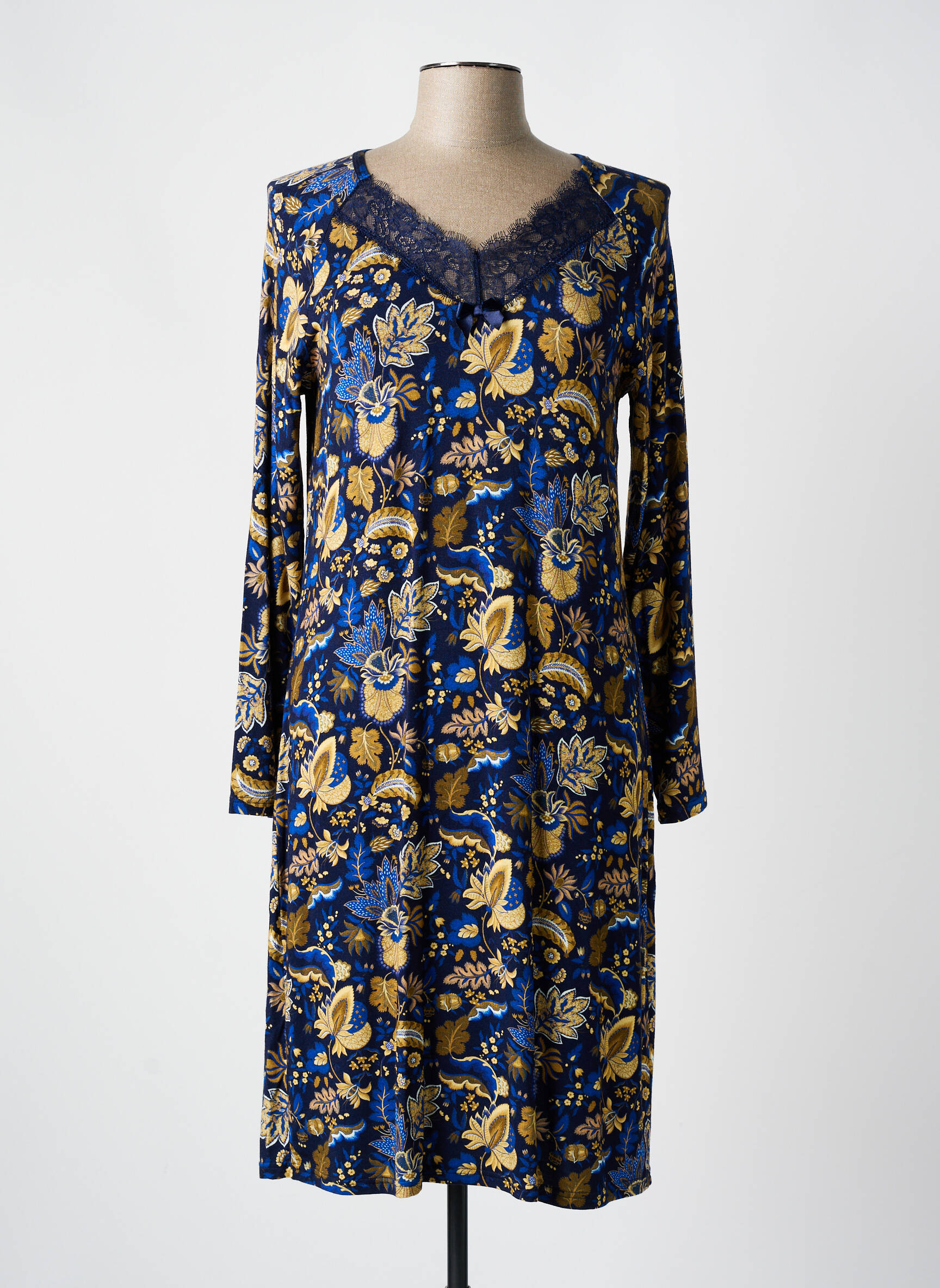 Plongez dans un rêve coloré avec cette chemise de nuit de la marque ANTIGEL, une véritable ode à la délicatesse et au confort. Son motif vibrant aux nuances de bleu et d'or évoque une élégance intemporelle, tandis que la dentelle délicate au niveau du décolleté ajoute une touche de romantisme. Les manches longues offrent une douceur enveloppante, parfaite pour les nuits paisibles. Ce modèle allie confort et style, faisant de chaque moment de détente une expérience raffinée et inoubliable.