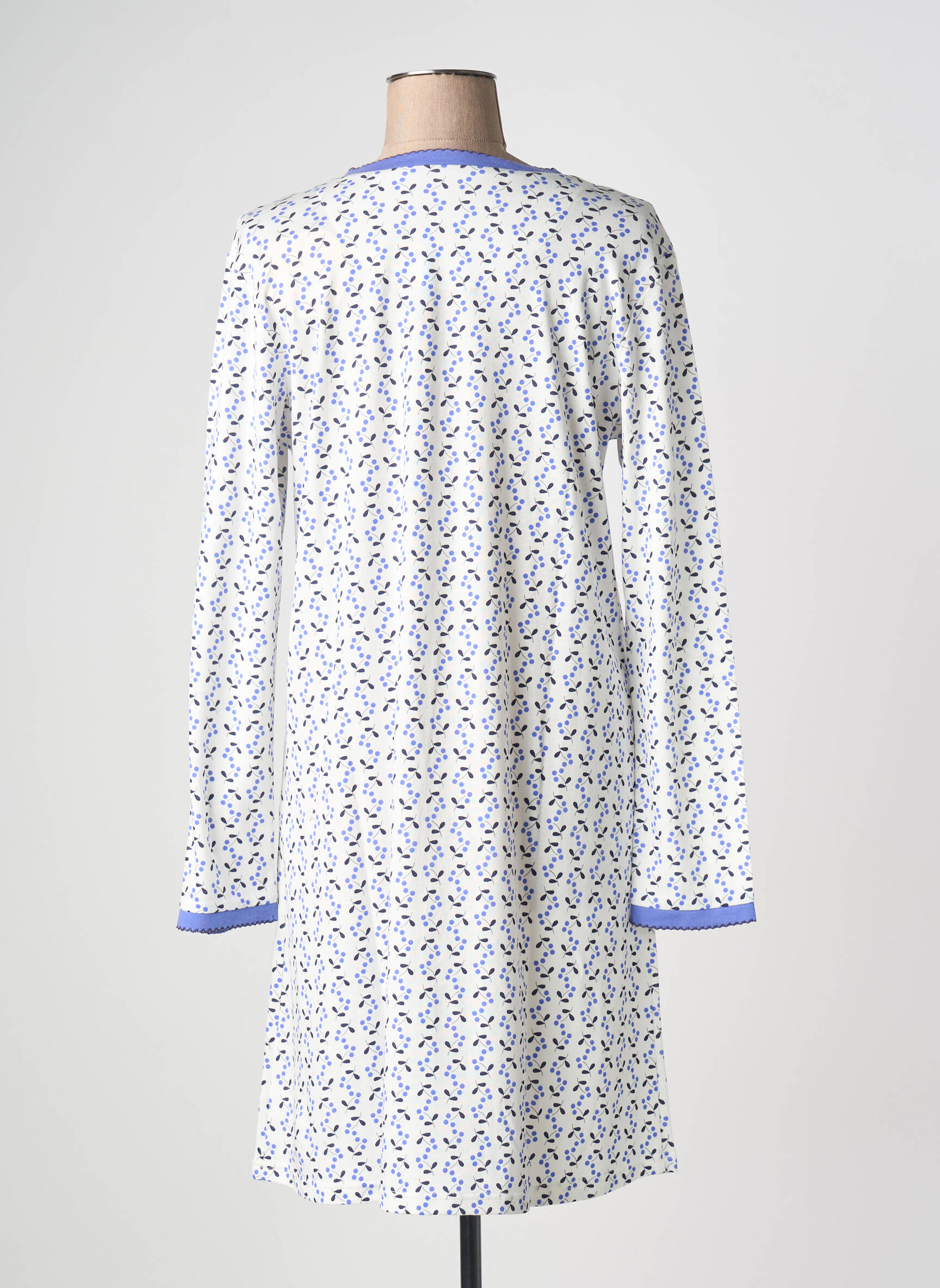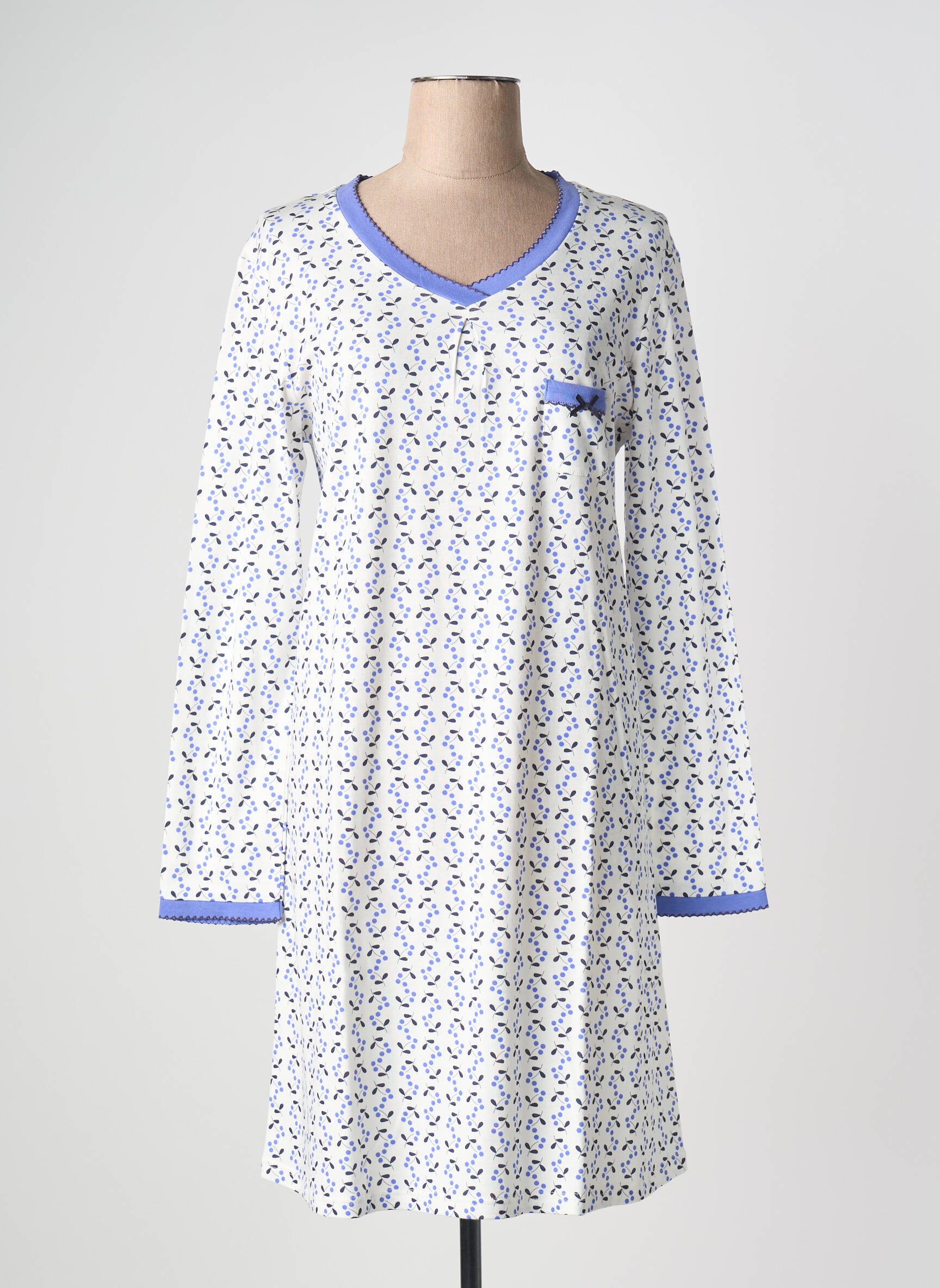 Profitez d’un bon plan irrésistible avec cette chemise de nuit CANAT pour femme, idéale pour allier confort et élégance à prix mini. Son motif délicat, rehaussé de finitions bleu lavande au col, aux poignets et sur la poche poitrine, apporte une touche de douceur à vos soirées tout en faisant rimer qualité avec petits prix. Ce modèle à manches longues séduit par sa coupe simple et féminine, parfait pour passer des nuits paisibles sans sacrifier votre budget.
