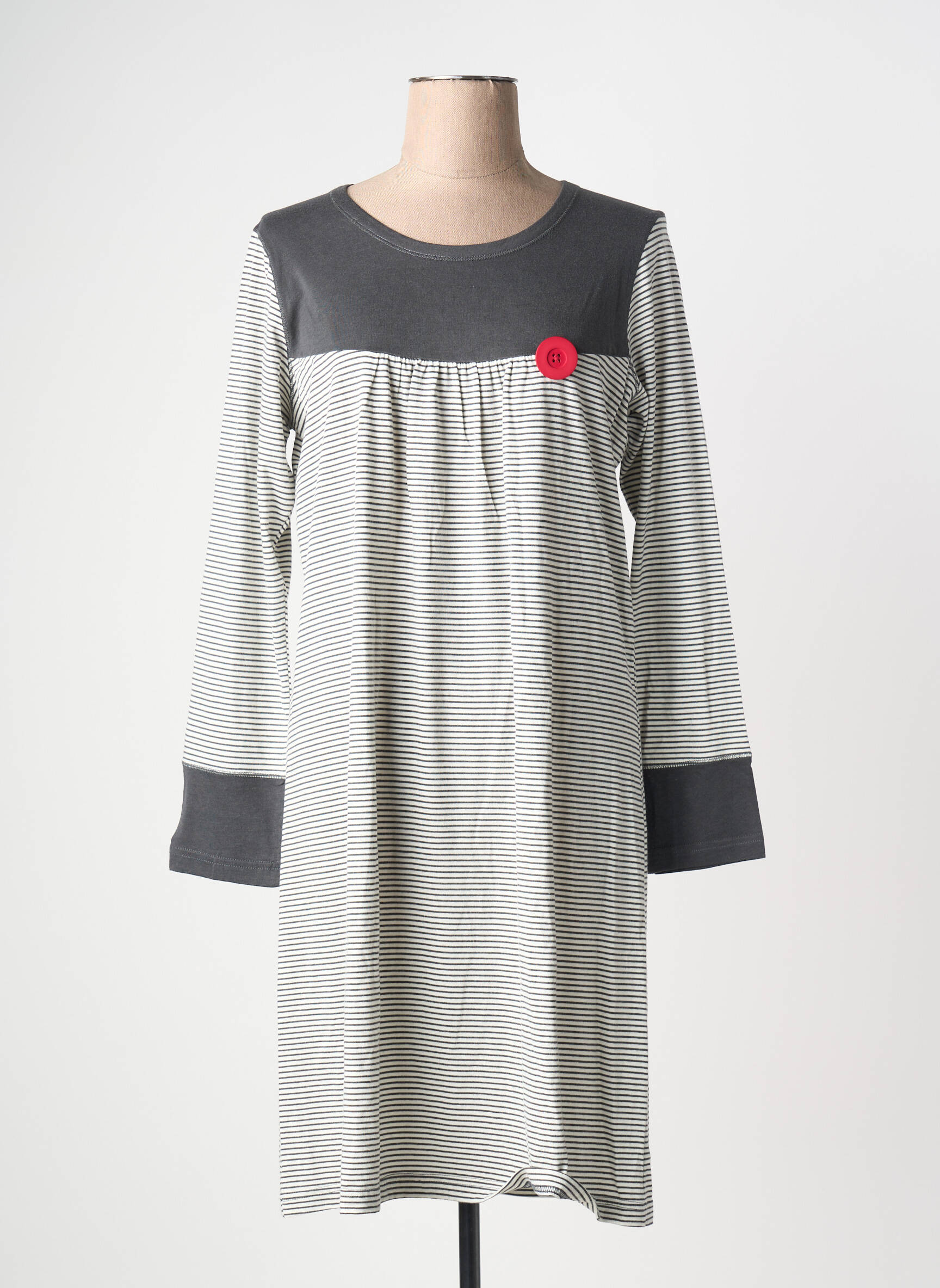 Profitez d’un excellent rapport qualité-prix avec cette chemise de nuit CANAT pour femme, idéale pour celles qui recherchent le confort sans compromis sur le style, même à petit prix. Légère et agréable à porter, elle séduit par son motif discret à fines rayures et son jeu de contraste entre le haut gris foncé, la boutonnière fantaisie et les empiècements aux poignets. C’est le bon plan du moment pour s’offrir une pièce élégante et pratique à prix déstocké.