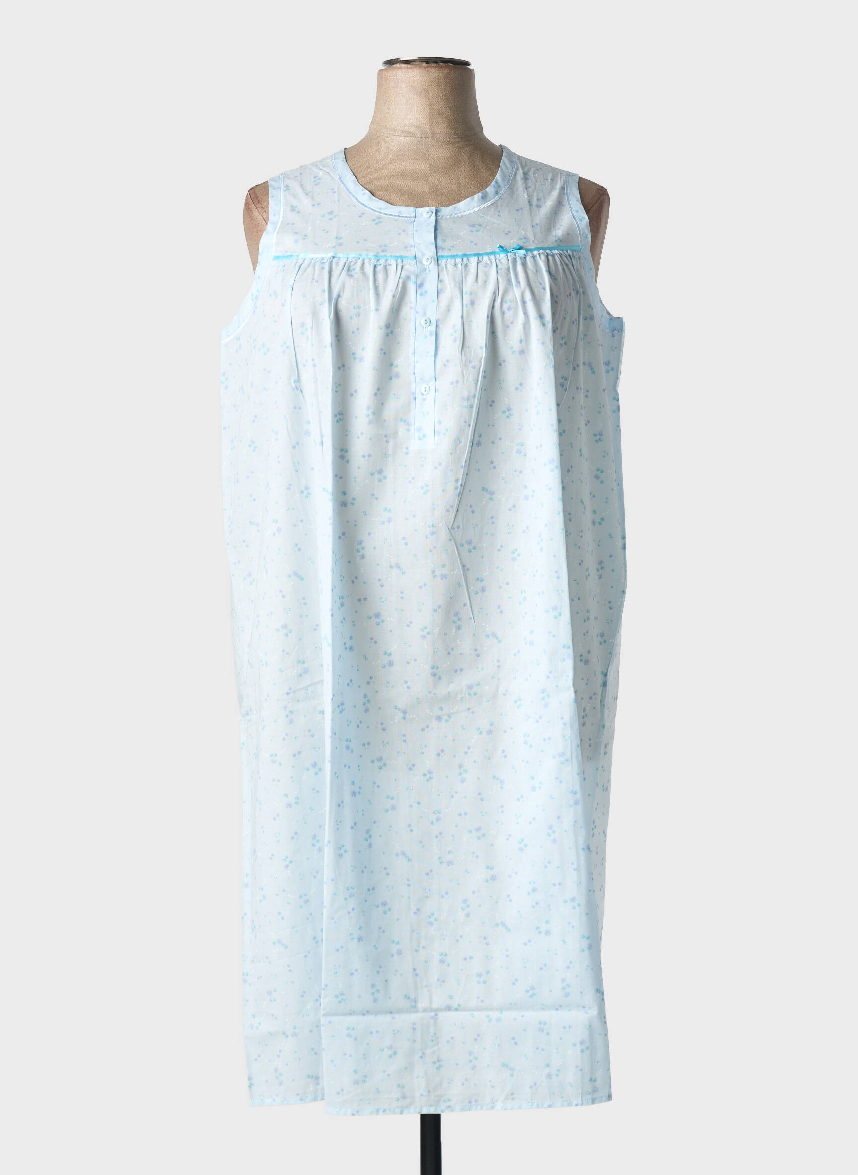 Craquez pour cette chemise de nuit LINCLALOR à prix doux, le choix parfait pour allier confort et économies. Son tissu léger, orné d’un délicat motif fleuri bleu ciel, offre une sensation de fraîcheur idéale pour vos nuits. Sa coupe ample sans manches et sa petite patte de boutonnage à l’encolure garantissent une grande liberté de mouvement, tandis que ses finitions soignées vous assurent un look classique et intemporel, à petit prix.
