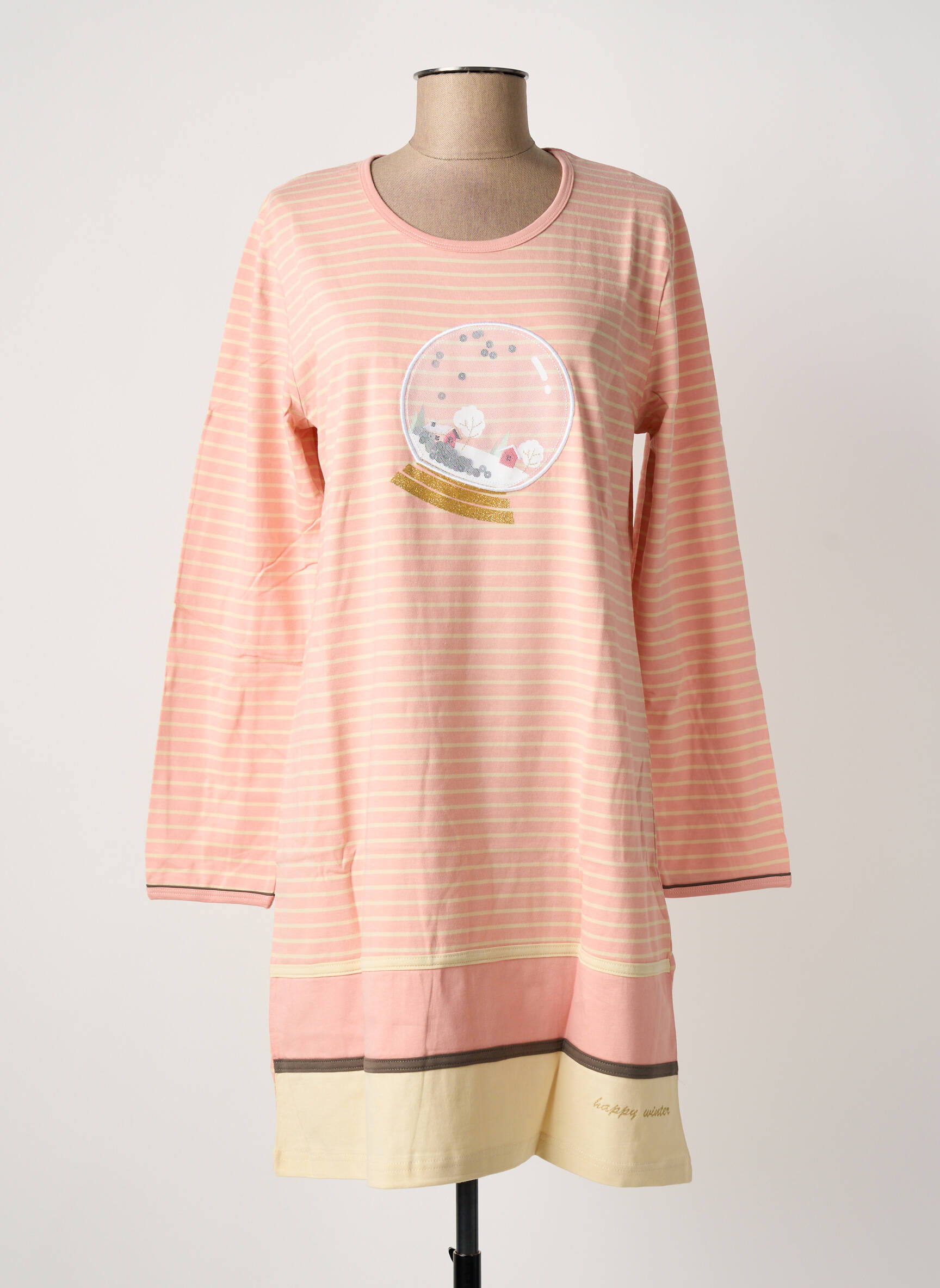 Craquez pour cette chemise de nuit ROSE POMME pour femme, une vraie affaire alliant douceur et style ludique à prix mini. Son motif boule à neige apporte une touche de fantaisie sur un joli fond à fines rayures roses, tandis que sa coupe confortable et ses manches longues promettent des nuits douillettes sans compromis sur l’élégance. Ce modèle est idéal pour se faire plaisir ou pour offrir, tout en réalisant une belle économie sur un produit de qualité boutique.