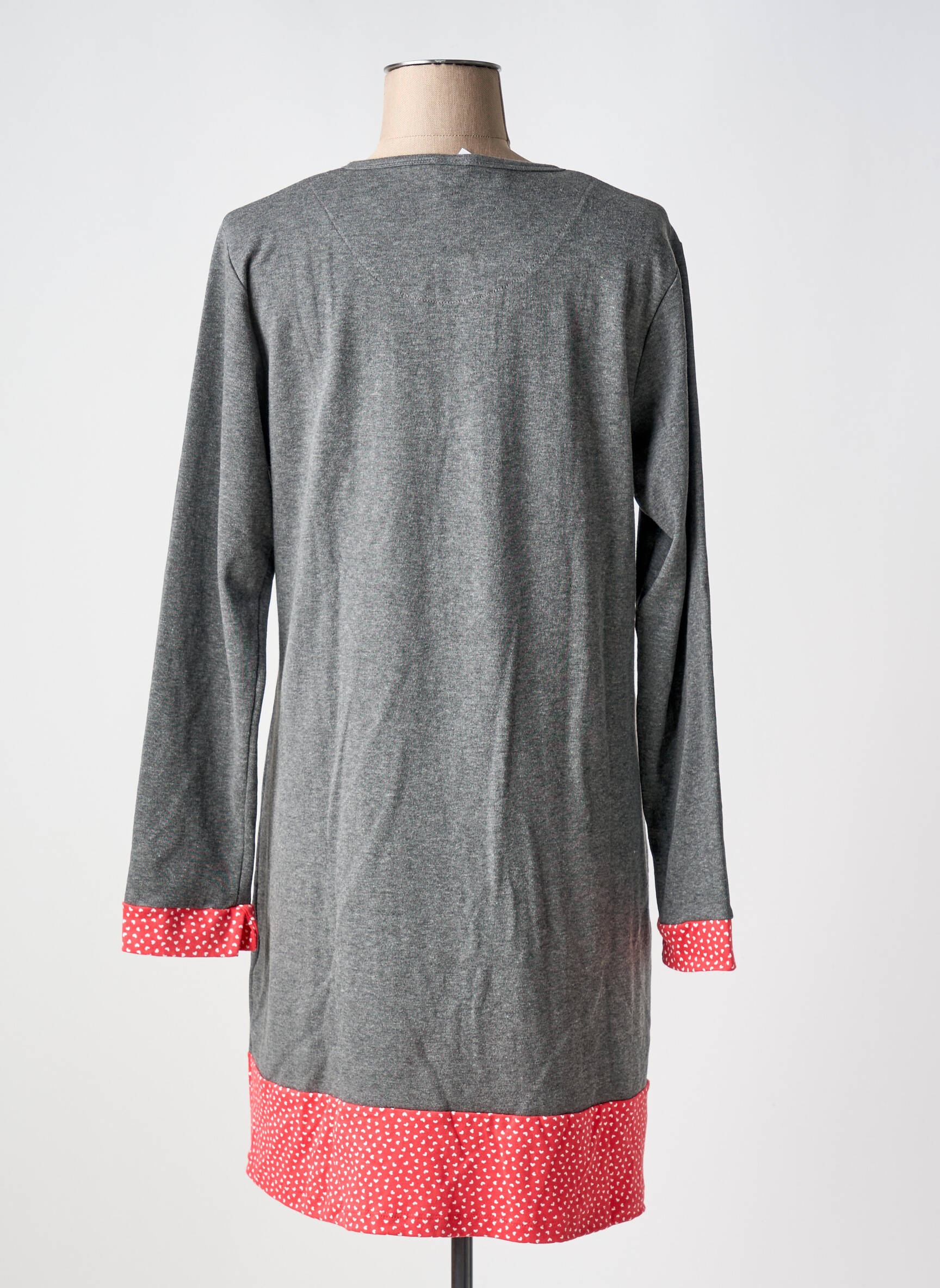 Offrez-vous un moment de douceur à prix mini avec cette chemise de nuit pour femme signée VANIA, qui allie parfaitement confort et fantaisie. Son coloris gris rehaussé de touches rouges, ses motifs cœurs et ses finitions à pois lui donnent une allure à la fois moderne et féminine, tout en vous garantissant un excellent rapport qualité-prix. C'est le choix idéal pour profiter d'un bon plan sans compromis sur le style pour vos soirées cocooning.