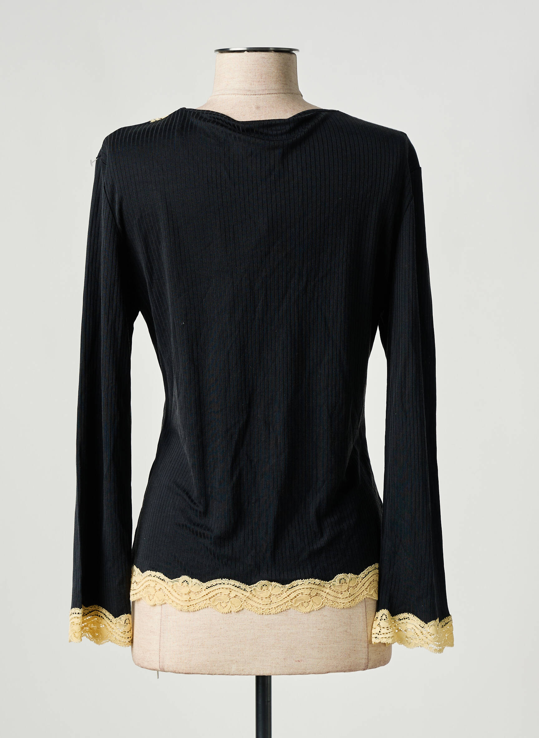 Craquez pour ce déshabillé de la marque Gattina, qui allie raffinement et petits prix, idéal pour se faire plaisir sans se ruiner. Son tissu noir délicatement mis en valeur par une jolie dentelle jaune pâle sur les bords et les poignets, complété par un joli nœud à nouer à la poitrine, offre une allure élégante et féminine, parfaite pour vos moments de détente à la maison tout en réalisant une belle économie sur ce produit de grande marque.
