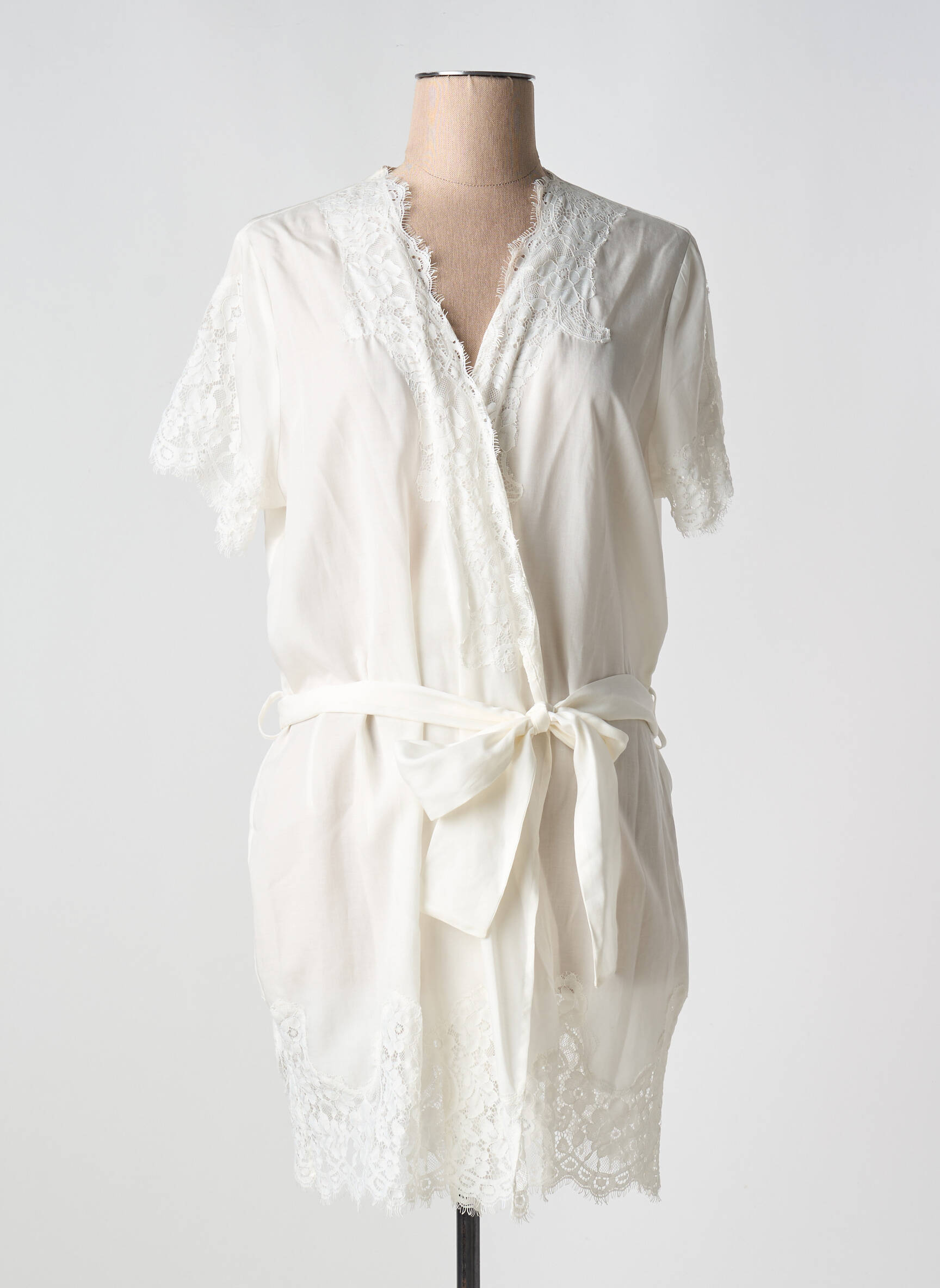 Craquez pour le raffinement à petit prix avec ce déshabillé VIVIS pour femme, une pièce élégante en délicate matière blanche, sublimée par des détails en dentelle sur les manches, le col et le bas, et rehaussée d’une ceinture à nouer pour une silhouette féminine tout en douceur. Offrez-vous la qualité boutique à prix déstockage et profitez d’un style chic sans vous ruiner.