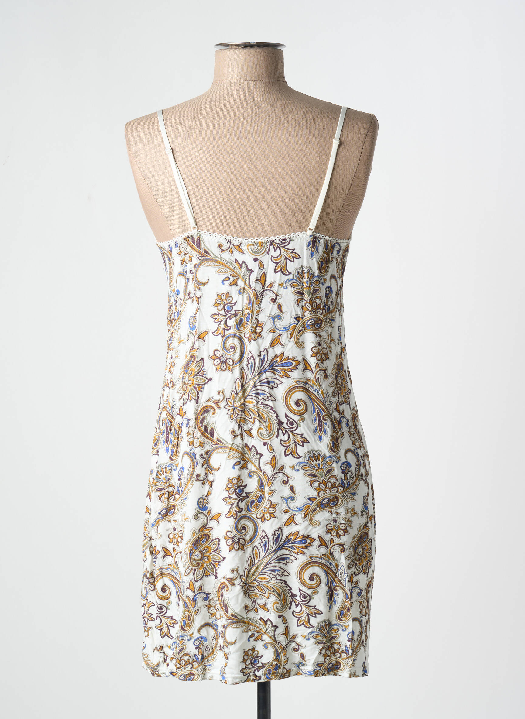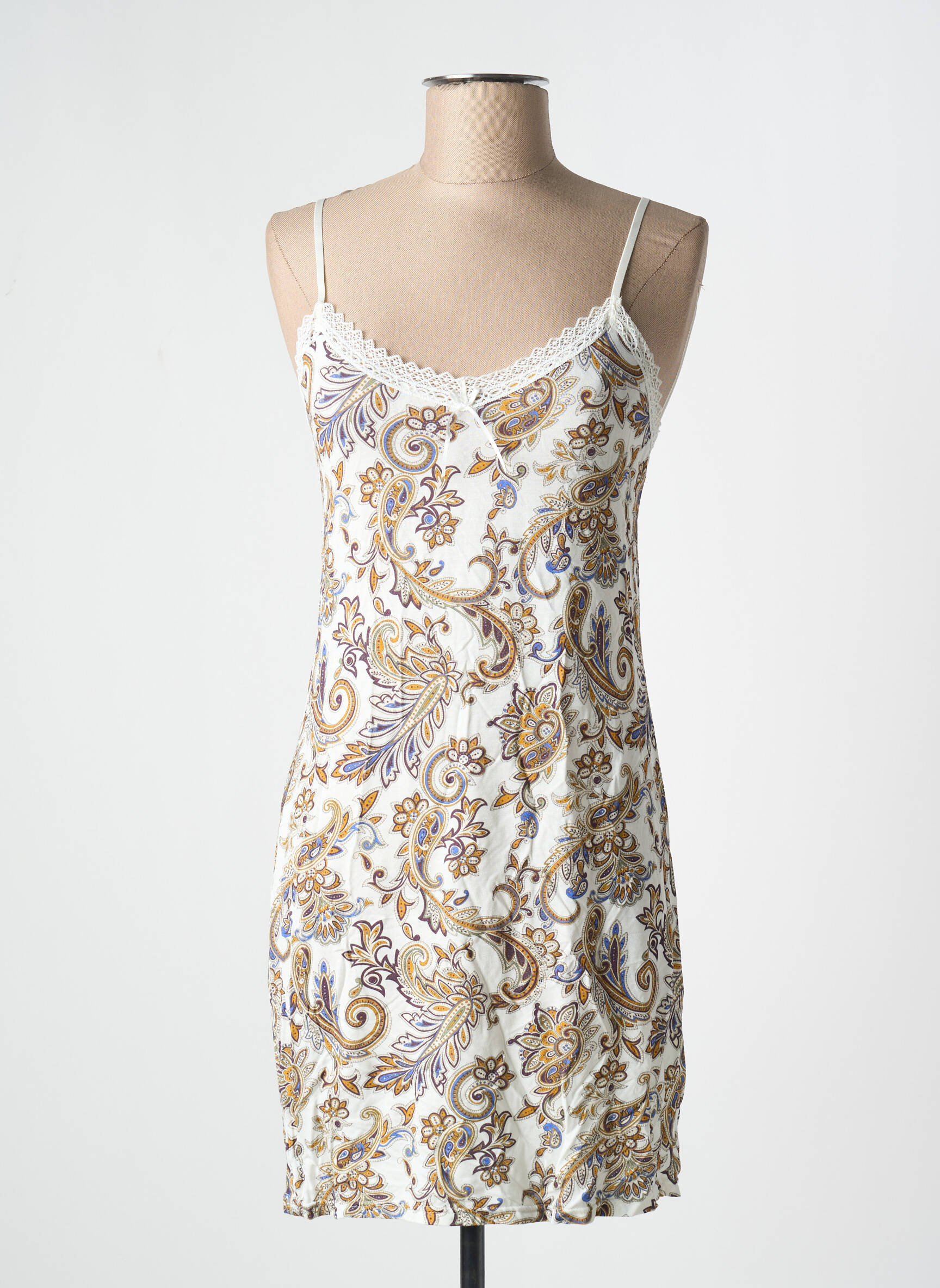 Offrez-vous une touche de douceur à prix tout doux avec cette nuisette signée ANTIGEL, idéale pour allier élégance et confort sans vous ruiner. Son délicat motif cachemire mêlant des teintes dorées et lavande apporte raffinement et originalité à votre garde-robe de nuit, tandis que les fines bretelles et la dentelle subtile à l’encolure ajoutent une note féminine irrésistible. C’est le bon plan parfait pour se faire plaisir avec une pièce de marque à petit prix !